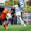 Fer full hart inn í Ásgeir Eyþórs á miðjum velli og Nacho fær gult spjald.