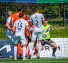Daði Ólafs setur boltann inn á teiginn og Orri Sveinn nær skallanum en boltinn framhjá.