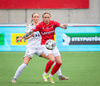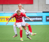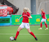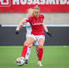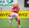 Elín Metta fær hér boltann utarlega í teignum tekur skotið á nær en Guðný ver frábærlega í horn.