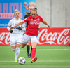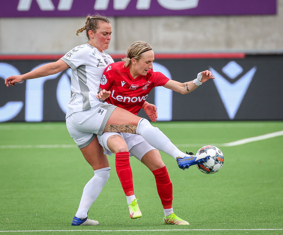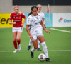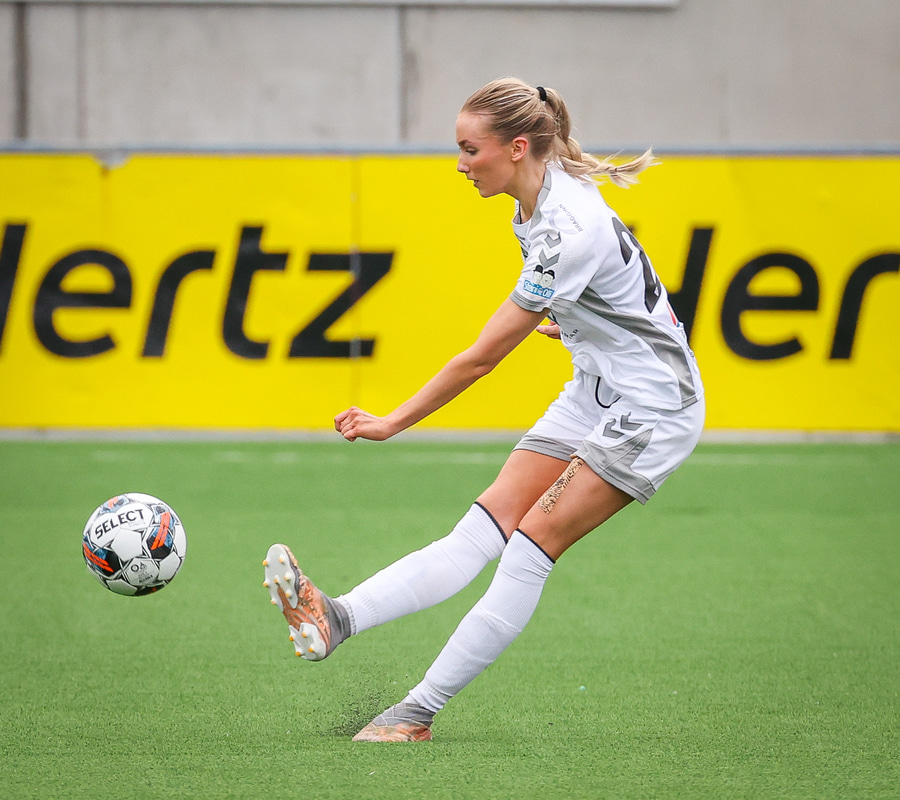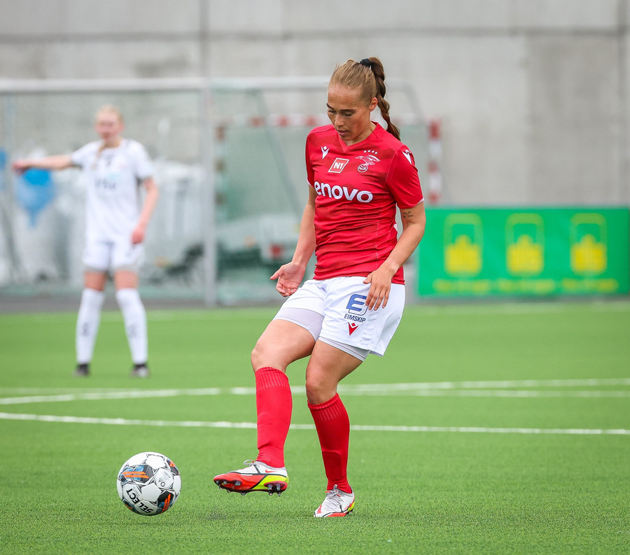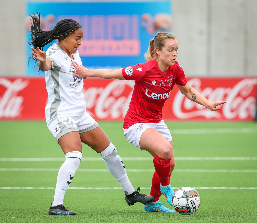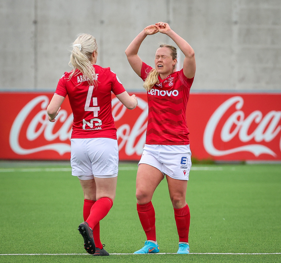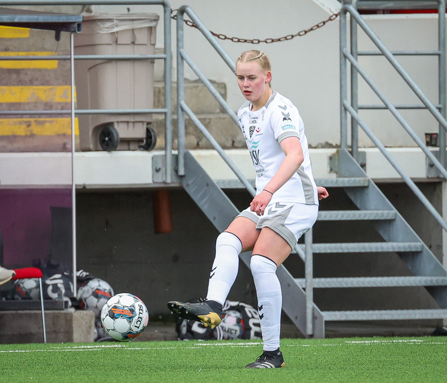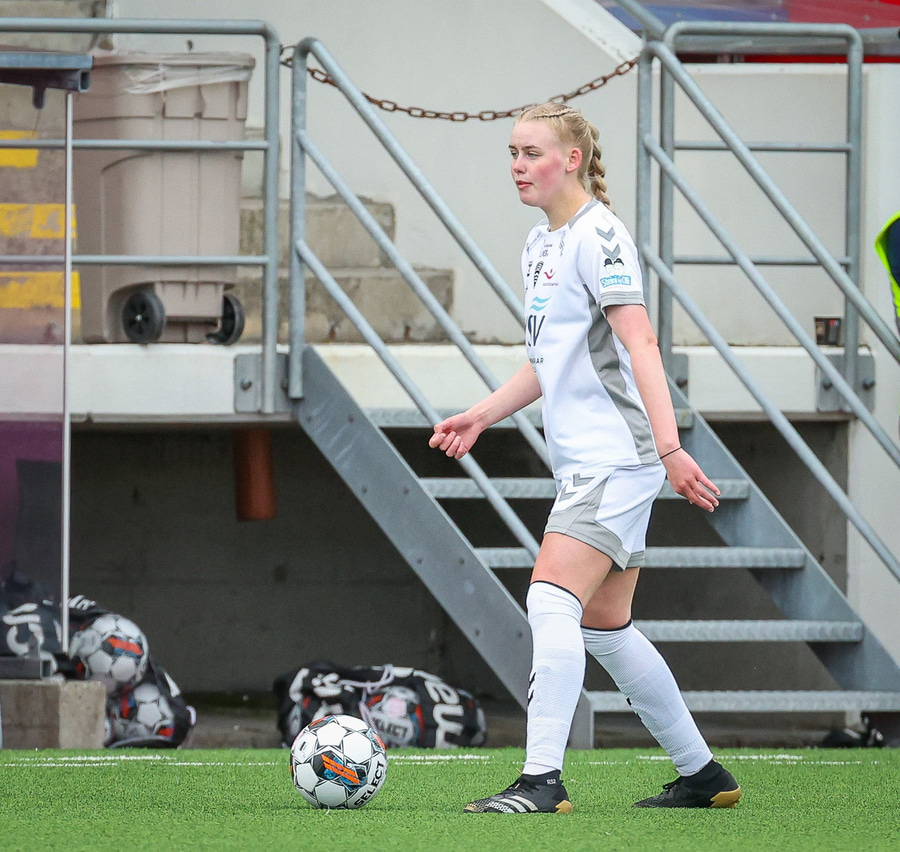 Brookelynn á hér fínasta skot fyrir utan teig en Guðný ver vel í marki gestanna.