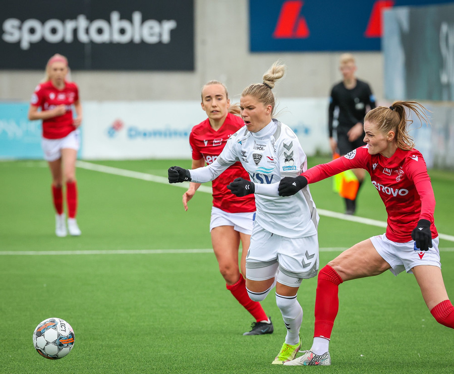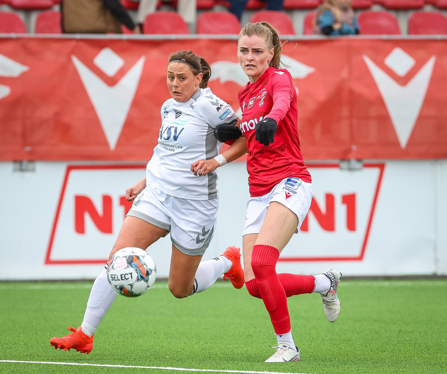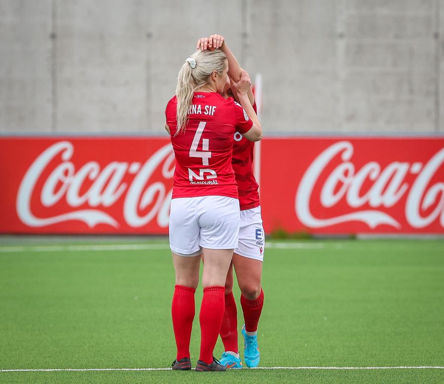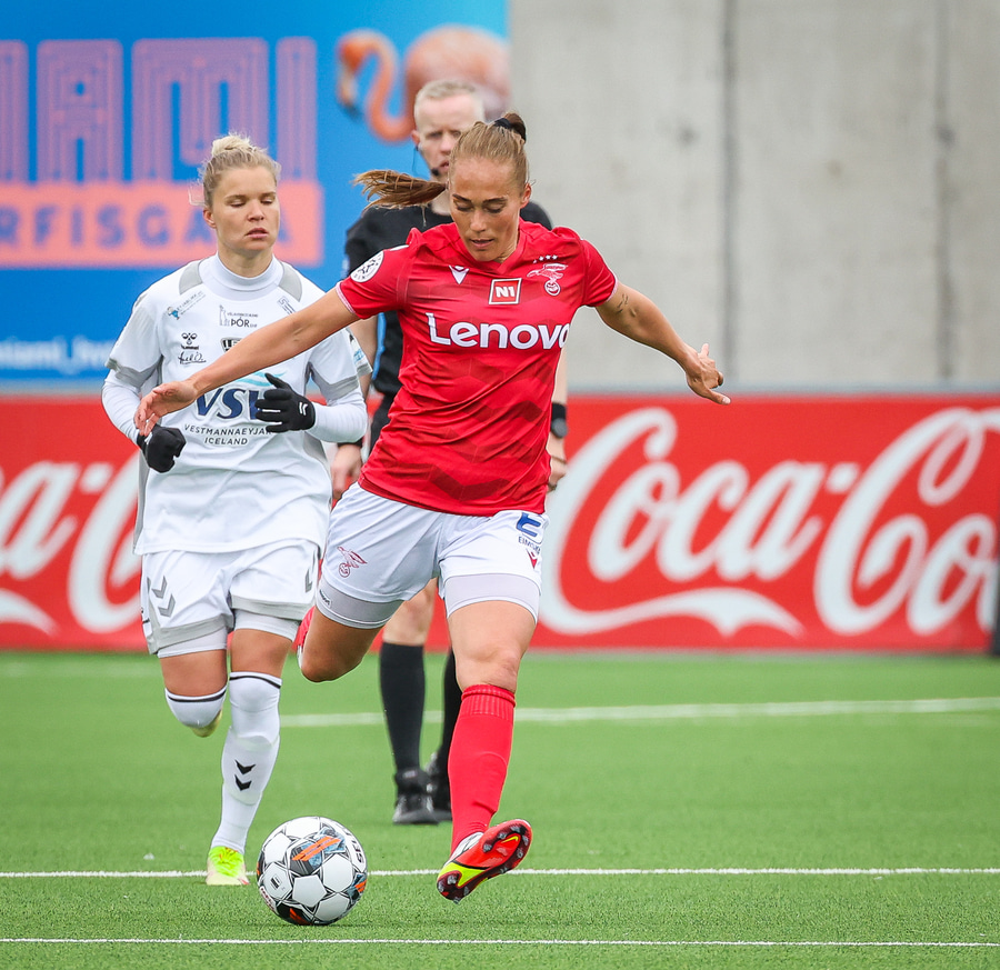 Eyjakonur byrjuðu með 5 manna vörn en eru núna komnar í 4 manna. Ragna Sara komin í hægri bakvörð og Sandra komin upp á kantinn.