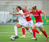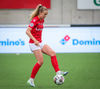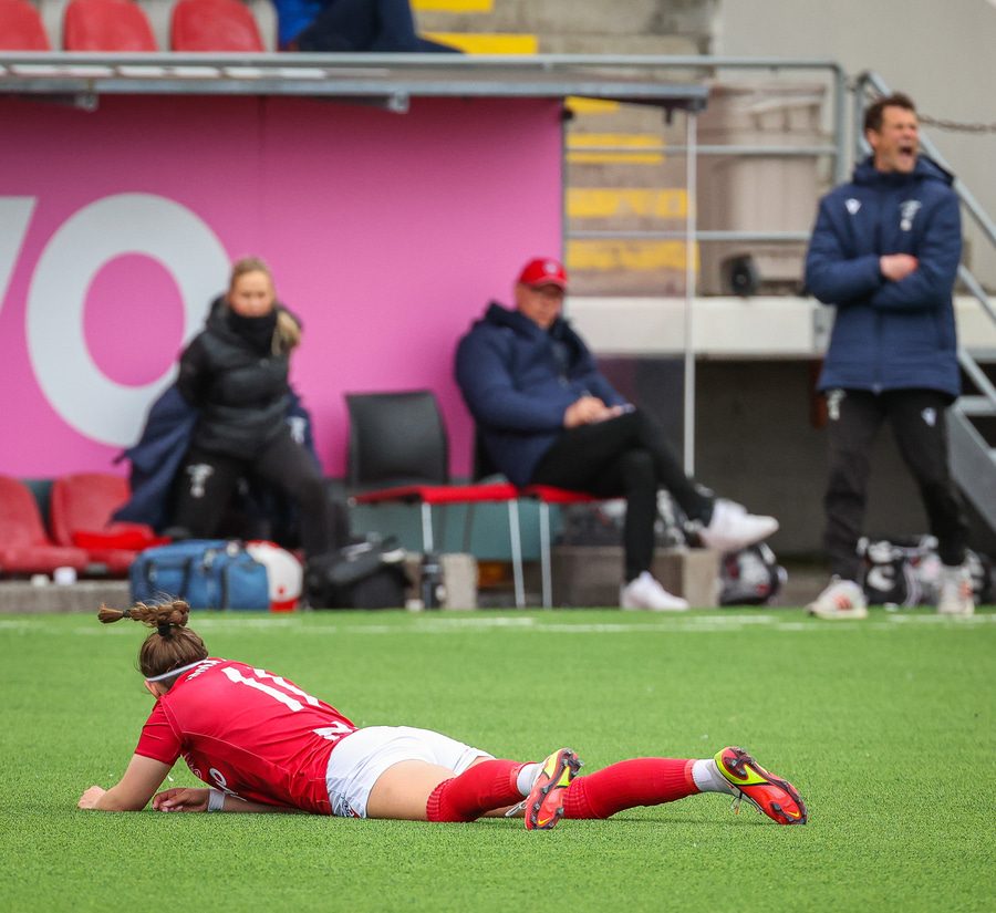 Valskonur spila hérna flottan fótbolta í góðri sókn sem endar þó með misheppnaðri fyrirgjöf frá Ásdísi sem endar í markspyrnu.