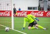 Elísa tekur hér skot sem Guðný ætlar að kýla frá en nær því ekki, boltinn á leiðinni inn í markið en Guðný rétt svo bjargar þessu.