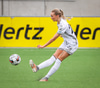 Elín Metta tekur skotið hægra megin í teignum en skotið fer framhjá.