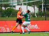 Natasha nær að skýla boltanum út fyrir endamörk eftir sendingu sem var ætluð Brennu.