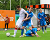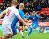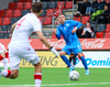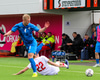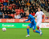 Bolti inn fyrir á Lozhkin og Ísak Óli flækist aftan í honum og hann fellur niður en Hollendingurinn gerir frábærlega og veifar höndum og dæmir ekkert!!