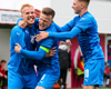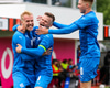 Íslendingar vinna boltann á miðjunni og Kristian Hlynsson geysist fram völlinn í 3 á 2 stöðu og Kristian leggur boltann til hliðar á Viktor Örlyg sem hamrar boltanum í nærhornið og menn tryllast úr gleði nánast!!
