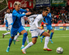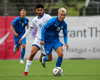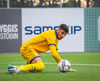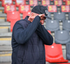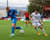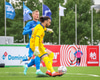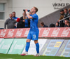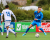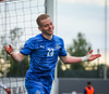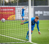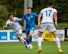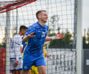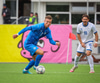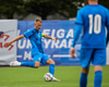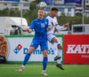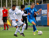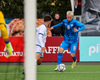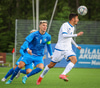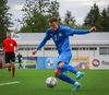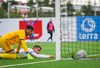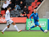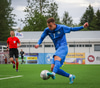 Bjarki Steinn með skot sem Stefanos Kittos lendir í smá brasi meo en heldur boltanum.