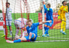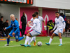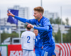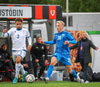 Íslensku strákarnir að komast í frábæra stöðu en Kristian Nökkvi setur of mikinn kraft í sendinguna fyrir og hún fer yfir.