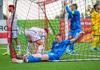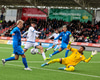 Kýpur í sjalfséðri sókn. Láta sig falla í teignum og eiga fyrirgjöf sem endar með lélegum skalla yfir.
