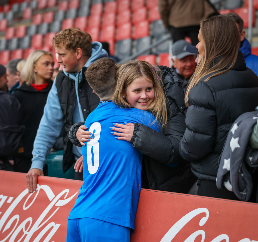 Ísak Óli er staðinn upp en haltrar af velli. Heldur meira um mjöðmina en það er ljóst að hann fann fyrir þessu.