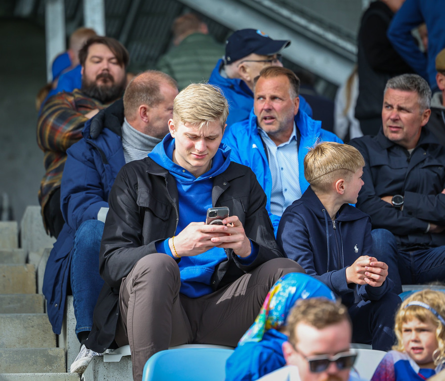 Það hefur fjölgað í VIP-pinu og spennan að aukast. Fólk býst við jöfnum og æsispennandi leik. Meðal þeirra sem mættir eru er Steinar Þór Guðgeirsson sem afskaplega fróðir menn fullyrða að sé sá eini sem bæði hefur orðið Íslands- og bikarmeistari með Fram og ÍBV.