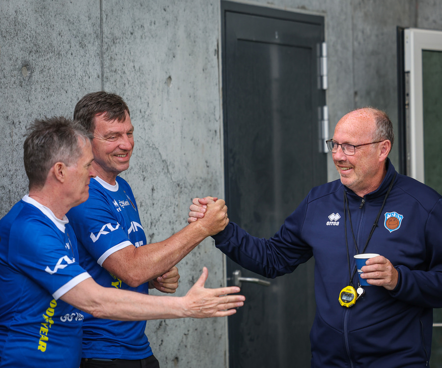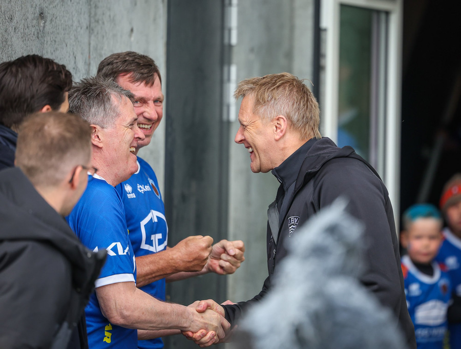 Mættir eru Pétur Ormslev og Gummi Torfa til að taka upphafsspyrnuna á vellinum. Alvöru goðsagnir hér á ferðinni!