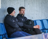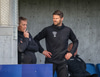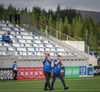 Hemmi Hreiðars og hundtryggi aðstoðarmaðurinn Heimir HallgrÃmsson skoða nýja gervigrasið à Úlfarsárdal.