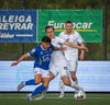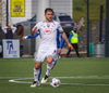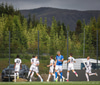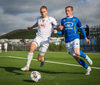Framarar hófu leik, þeir sækja í átt að nýju sundlauginni í fyrri hálfleik.