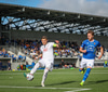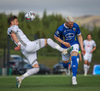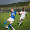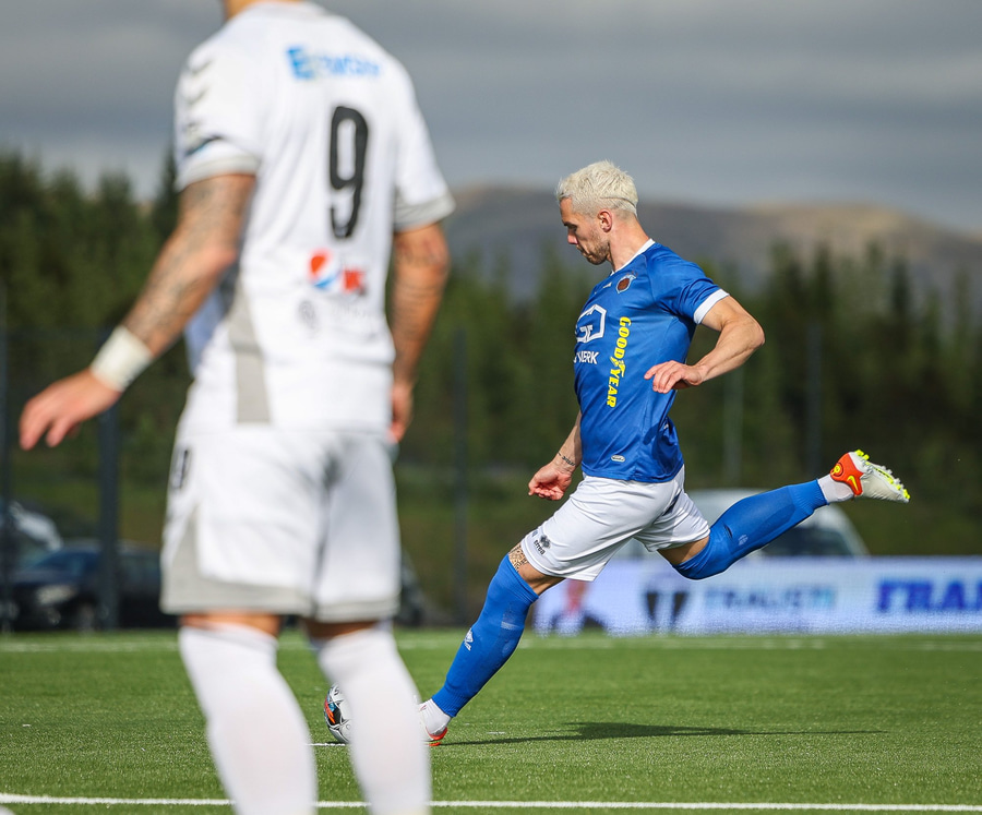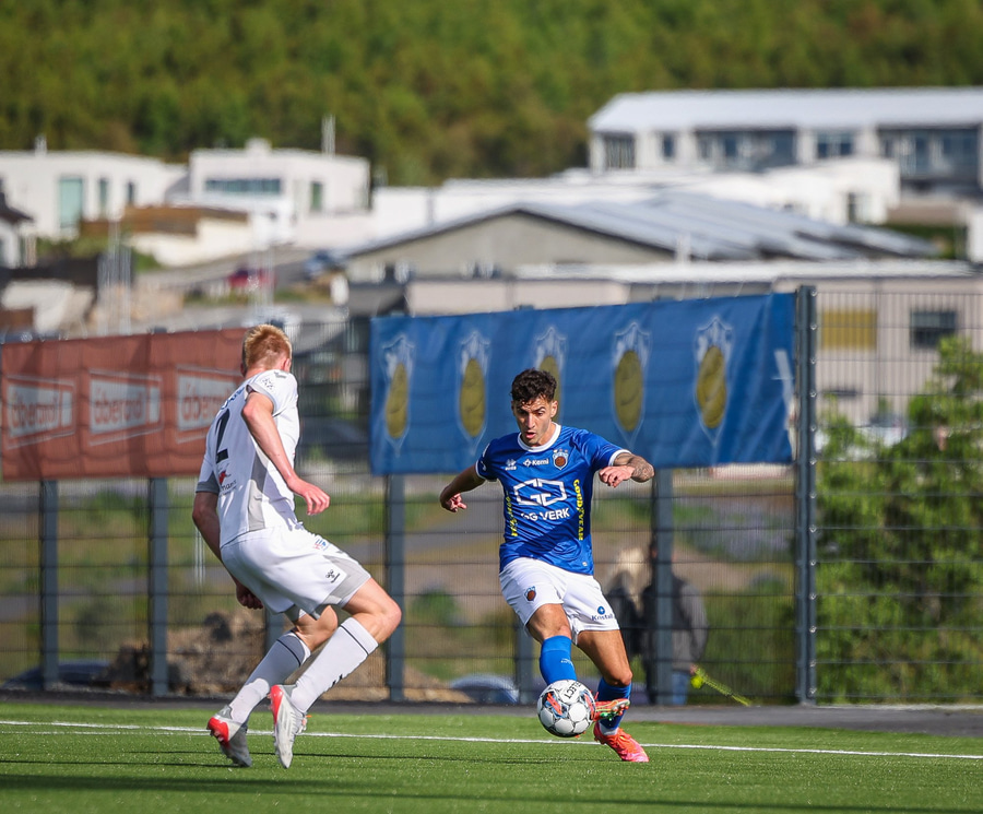 Fred reynir að lauma boltanum á Tryggva Snæ en aðeins of föst sending. Hugmyndin hinsvegar góð. Hrósum fyrir hana.