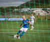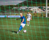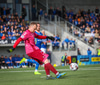 Fyrsta mínútan á nýja vellinum!!! Skyndilega er Andri Rúnar kominn í gegn og Óli Íshólm brýtur á honum!