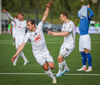 Gummi Magg hirðir knöttinn og leggur hann smekklega í tómt markið.