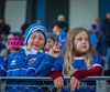 "Dómarinn sökkar!" syngur hér hópur af mjög ungum Frömurum.