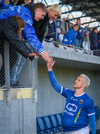 Hér í Úlfarsárdal eru snyttur á borðum og fólk í hátíðarskapi. Borgarritarinn og Eyjamaðurinn Þorsteinn Gunnarsson er meðal þeirra sem mættir eru. Stór stund fyrir Framara í kvöld.