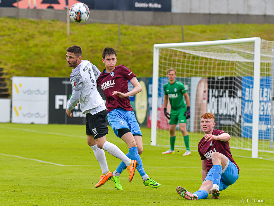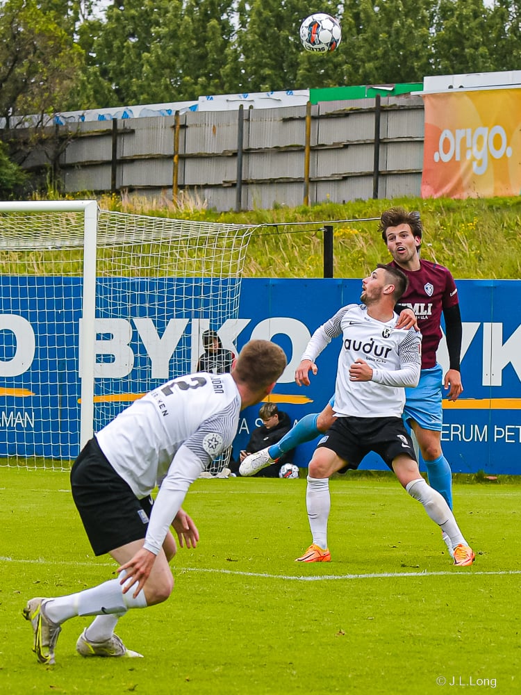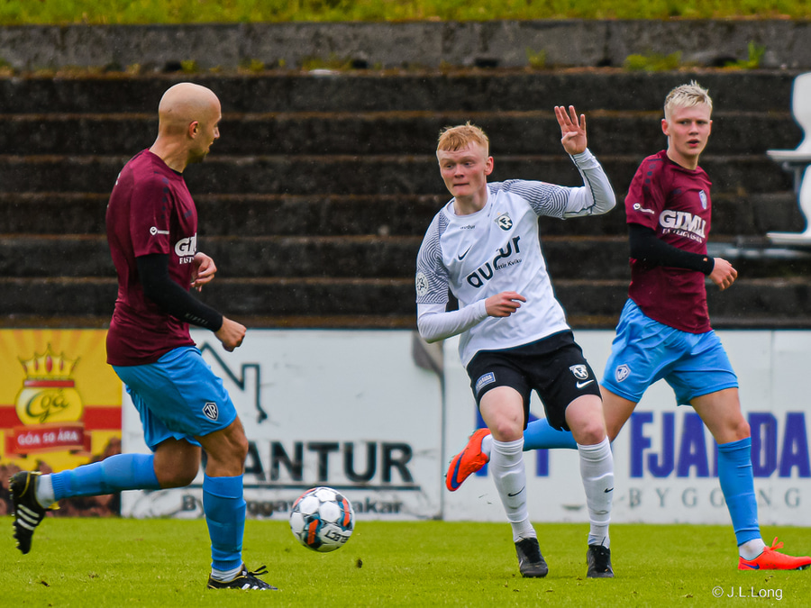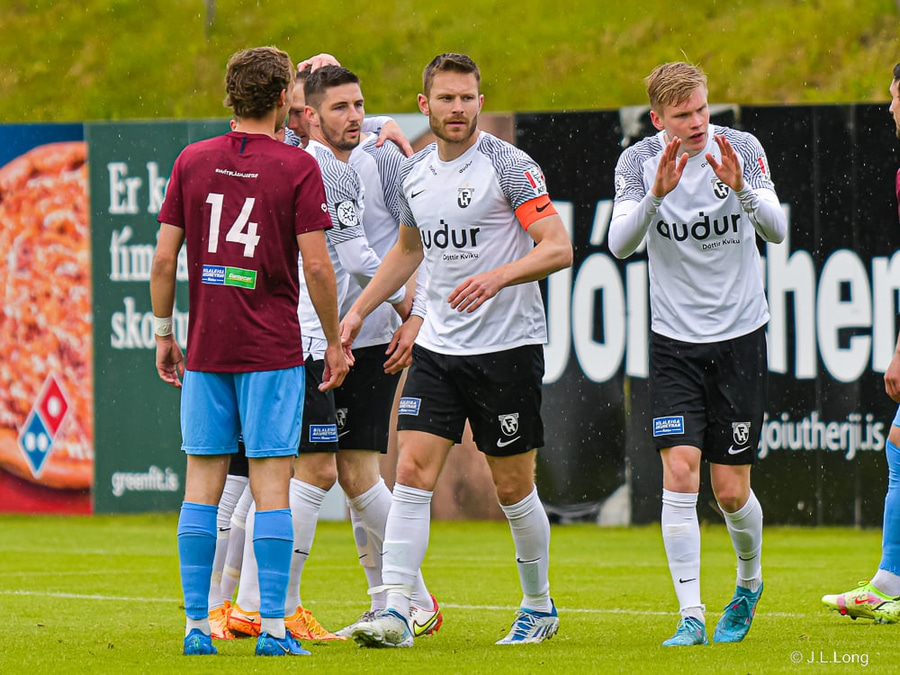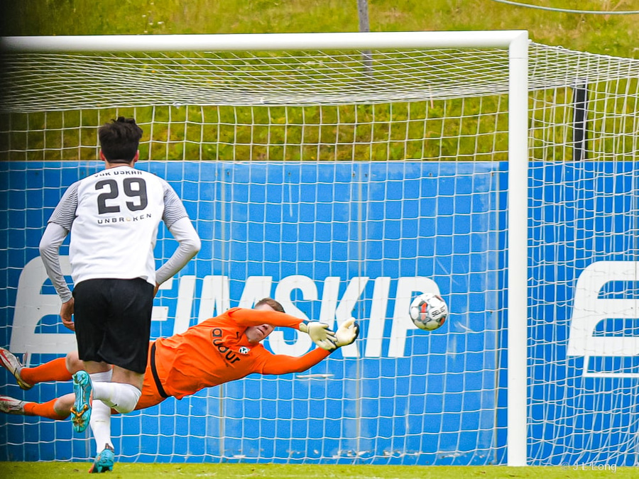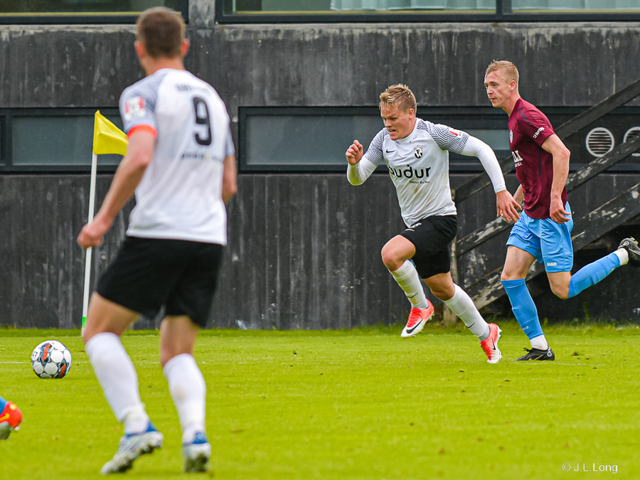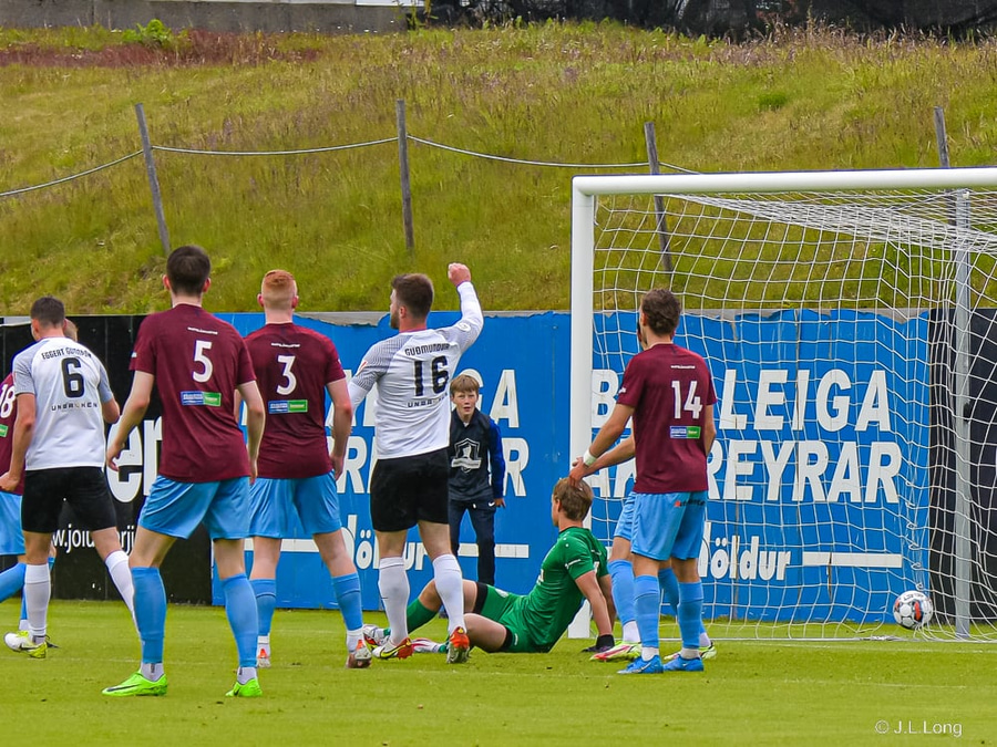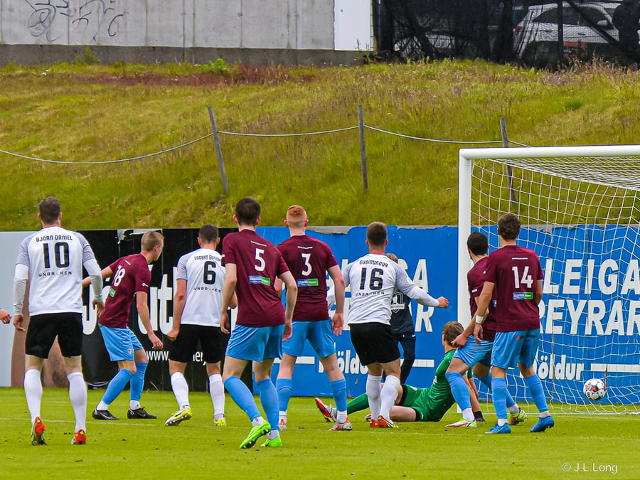 Vel gert hjá heimamönnum eftir erfiða byrjun. Oliver á mjög góða fyrirgjöf frá hægri þar sem Björn Daníel kemur fljúgandi og stangar boltann í netið