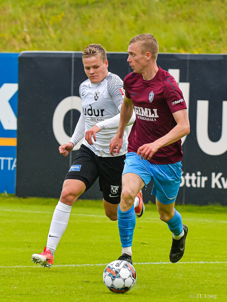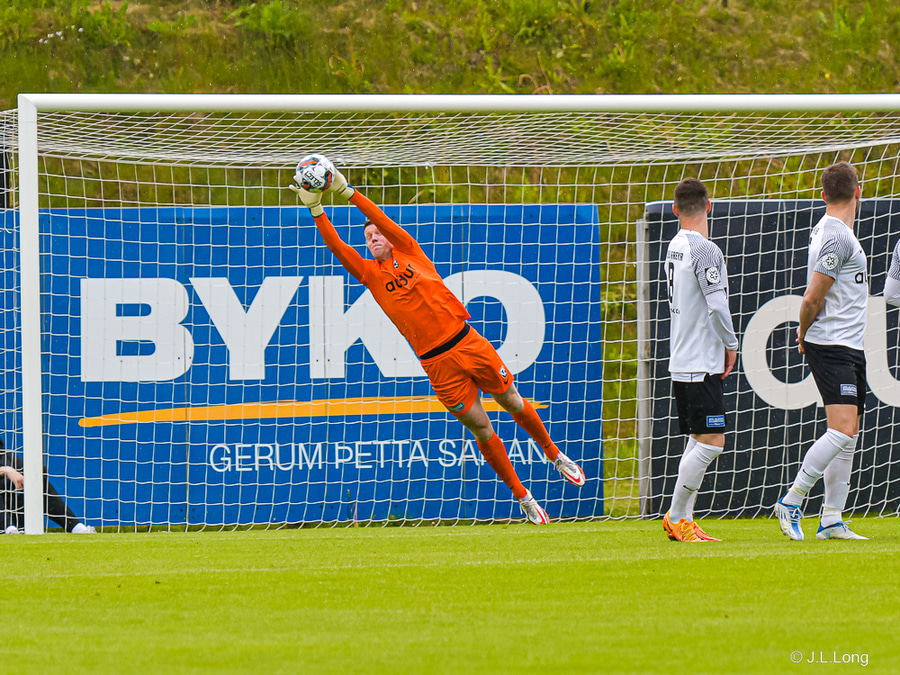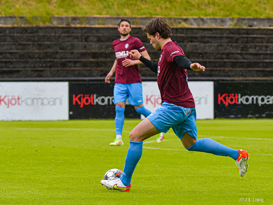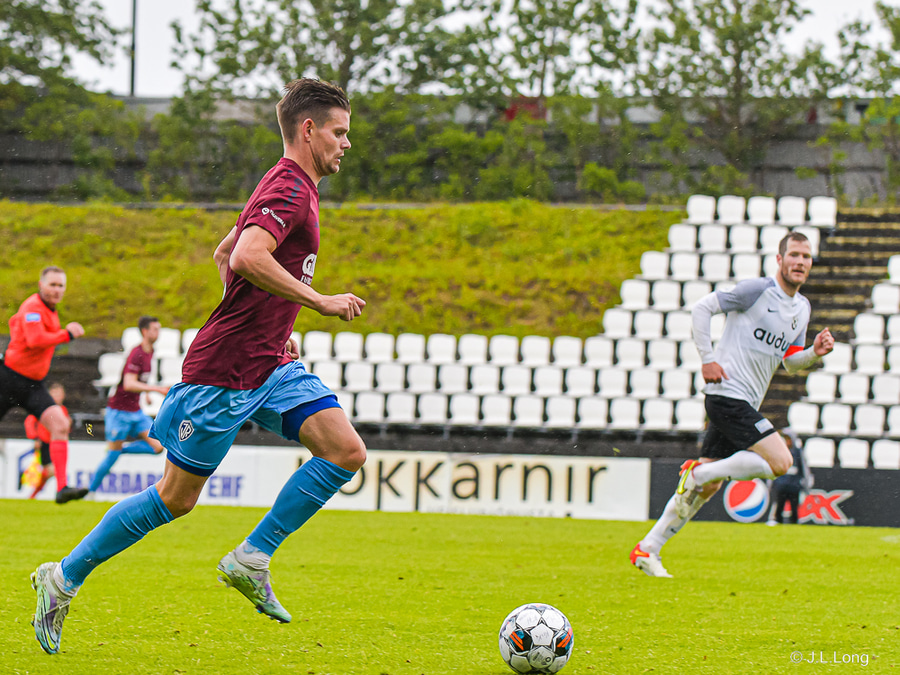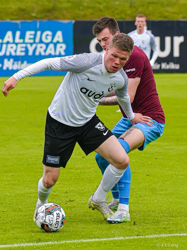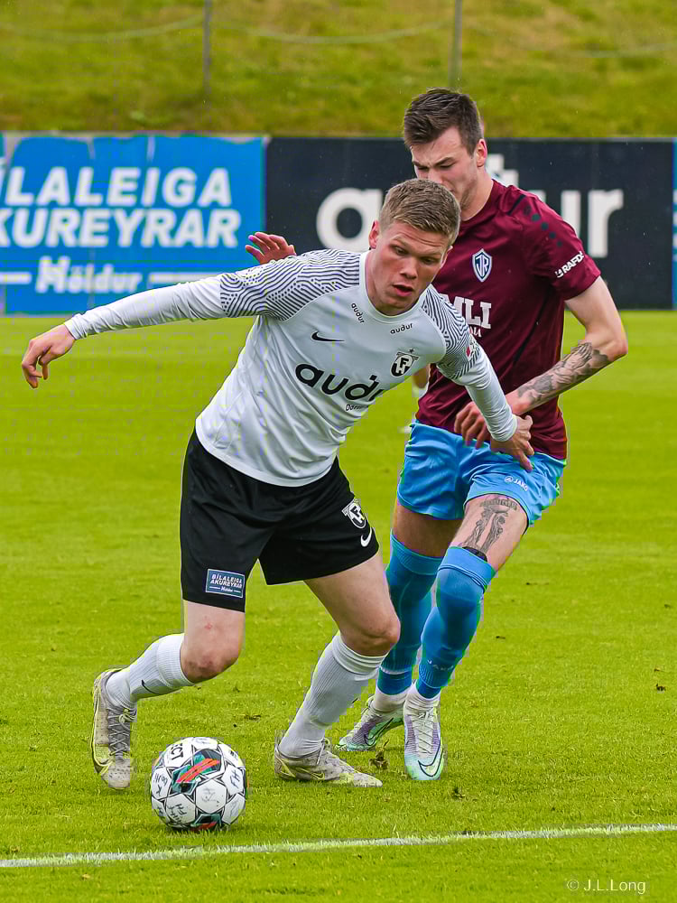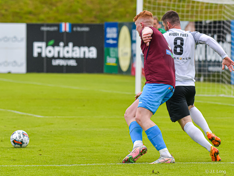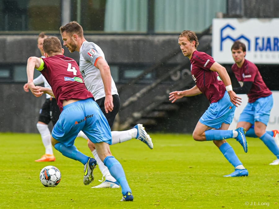 Vel gert hjá heimamönnum eftir erfiða byrjun. Oliver á mjög góða fyrirgjöf frá hægri þar sem Björn Daníel kemur fljúgandi og stangar boltann í netið
