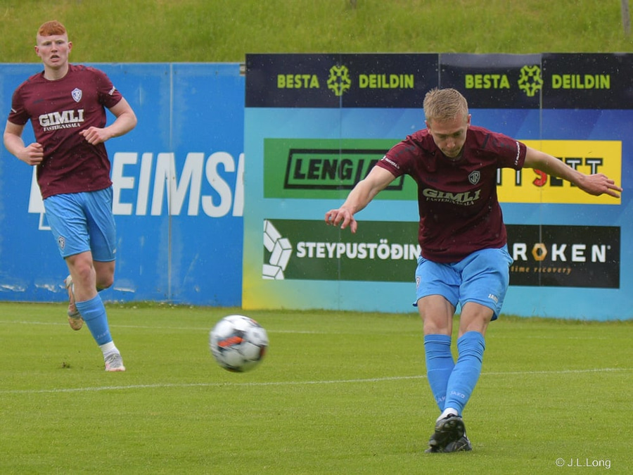 verð að játa að ég sá ekki aðdraganda þessa marks. Tæp mínúta á milli marka. Er að skrifa um þriðja mark leiksins og lít upp og þá er Baldur bara kominn í hörkufæri og skorar.