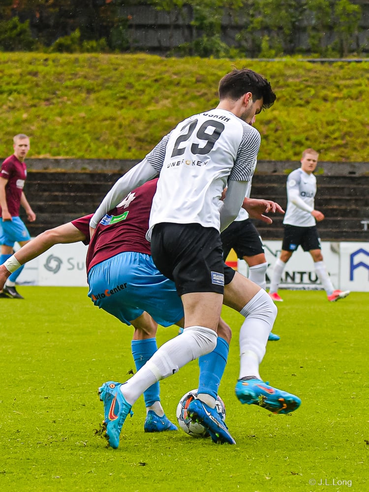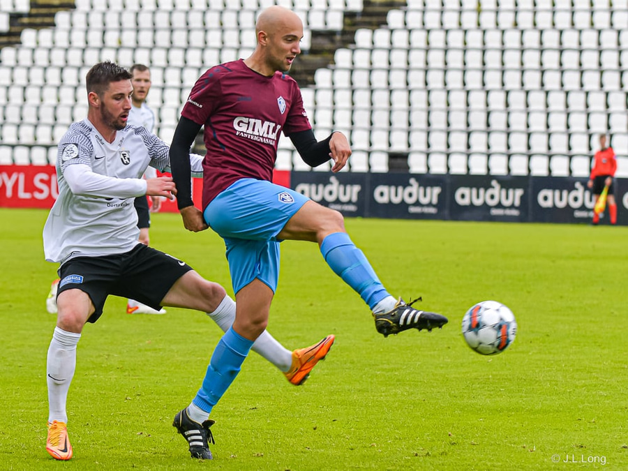 Brot á miðjum velli. Menn í stúkunni ekki sammála um hvort það hafi verið Björn Daníel eða Haraldur Einar sem fékk spjaldið.. Set Halla þar til annað kemur í ljós.