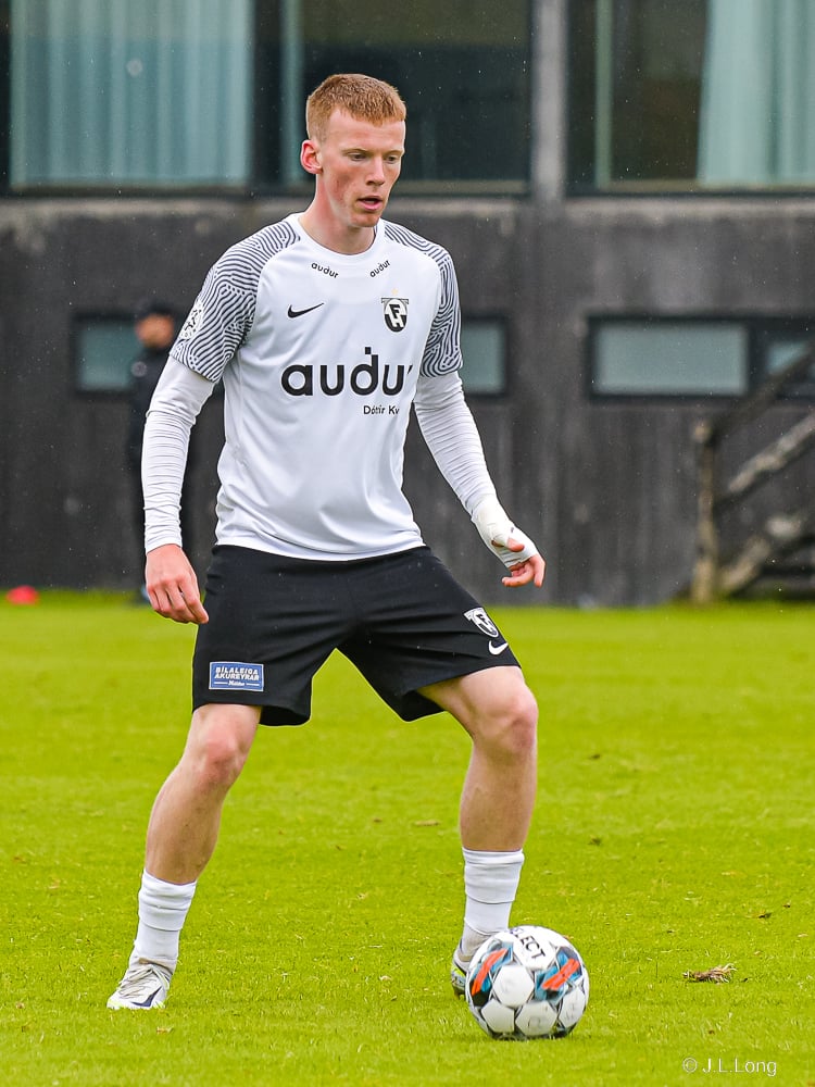 Rosalega skemmtileg sókn hjá FH. Baldur Logi með skemmtilega sendingu inn fyrir á Lennon sem á skot en Vilhelm í markinu ver vel í horn.