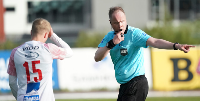 Arnar Þór Stefánsson er með flautuna hér í kvöld. Patrik Freyr Guðmundsson og Patryk Emanuel Jurczak eru honum til aðstoðar. Magnús Sigurður Sigurólason er eftirlitsmaður KSÍ.