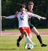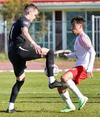 Aron Ingi og Bjarni Guðjón spila hér vel á milli sín og Aron við það að sleppa í gegn en KV nær að bjarga á síðustu stundu.