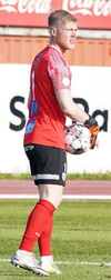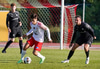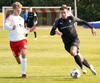 Willard nálægt því að sleppa í gegn en nær ekki valdi á boltanum svo hann endar í höndunum á Ómari Einarssyni í marki KV.