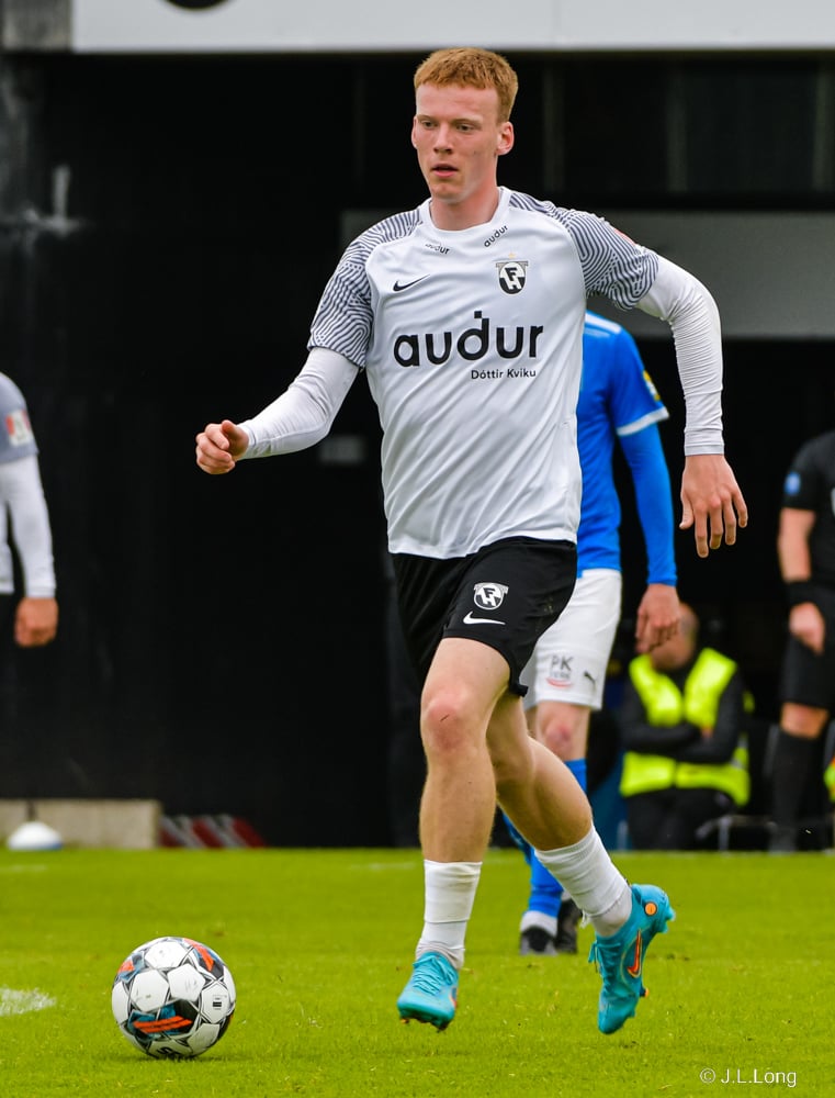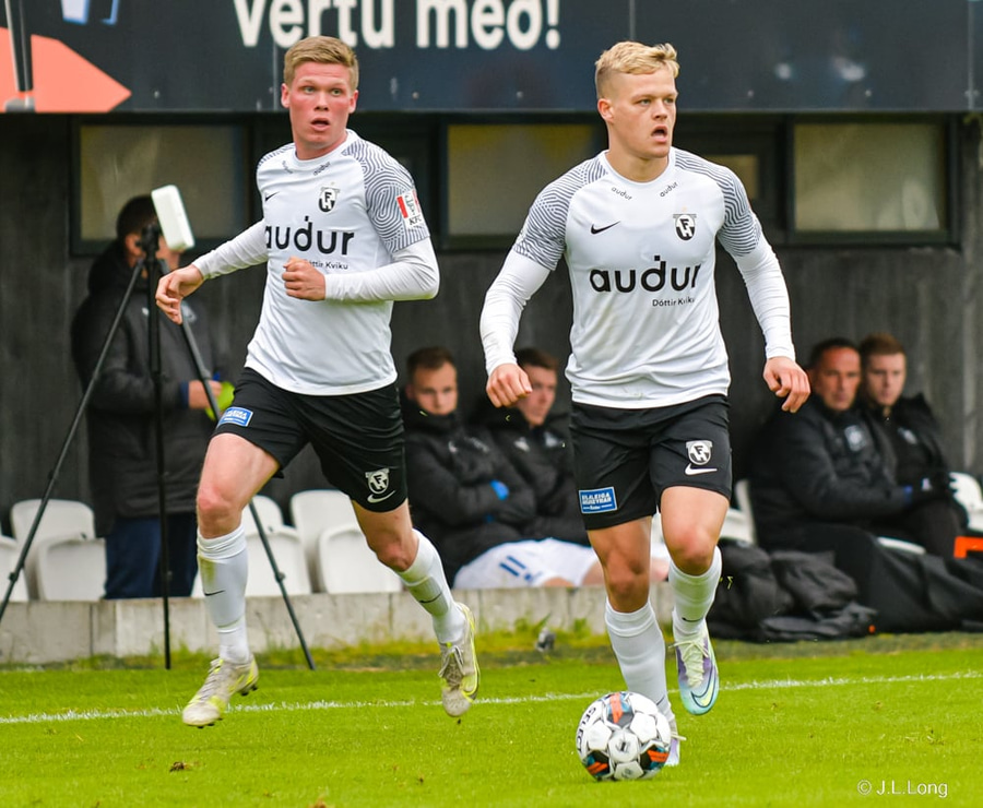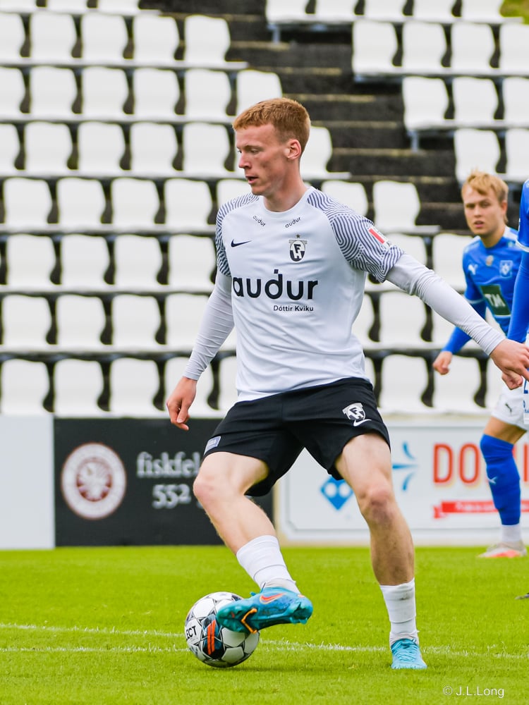 Ísak með mjög skemmtilega takta eftir að hafa stolið boltanum af Ástbirni. Sendir svo yfir á Adolf sem tekur fast skot fyrir utan teig en beint á Gunnar sem sér við honum.