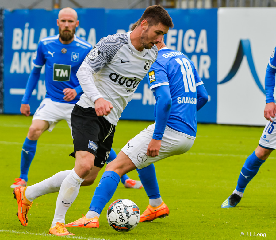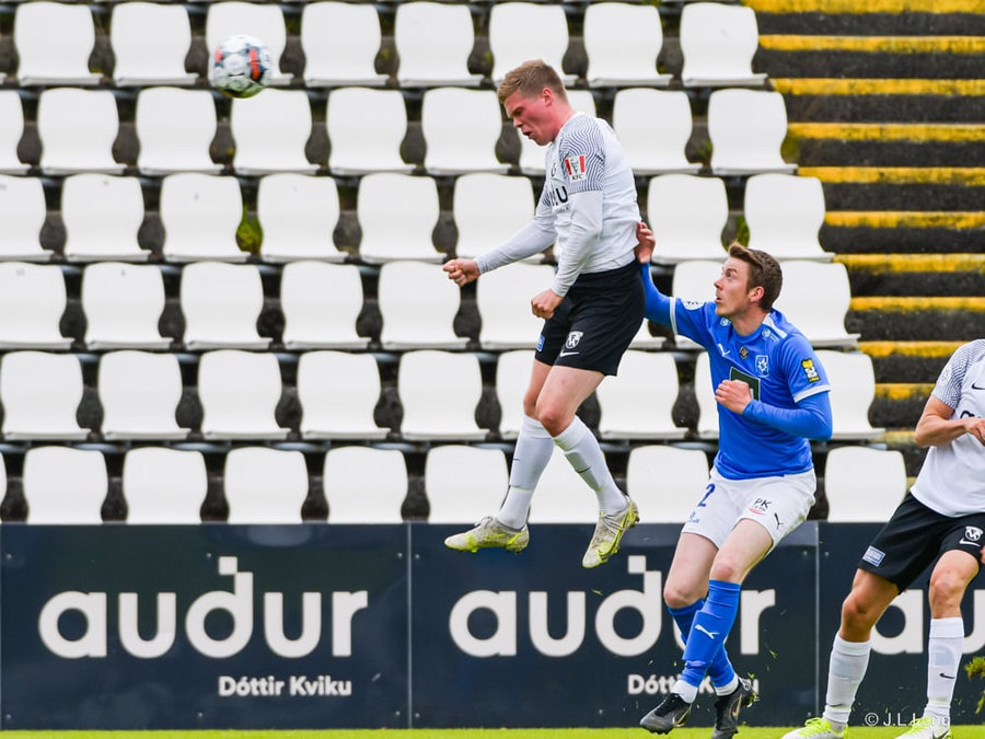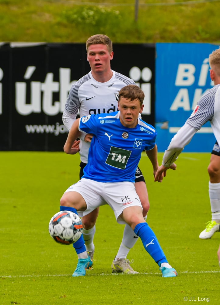 Ísak sýnir flotta takta á vinstri kantinum til að fara framhjá Ástbirni en skotið hans í varnarmann og gestirnir fá horn.
