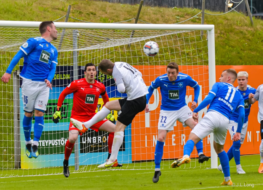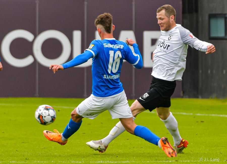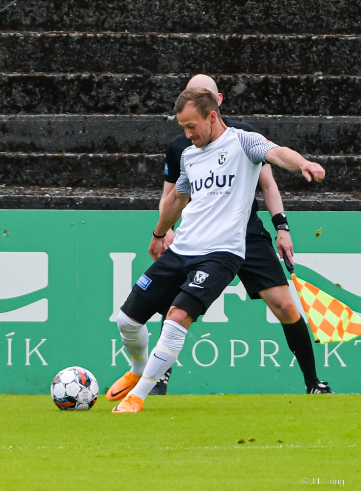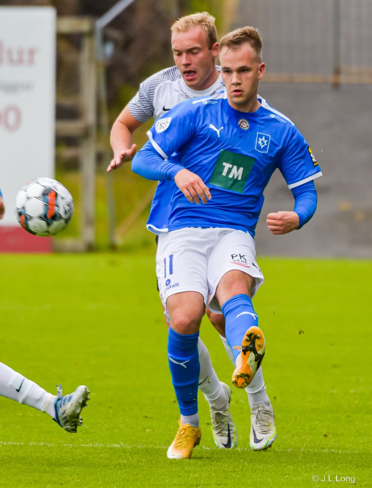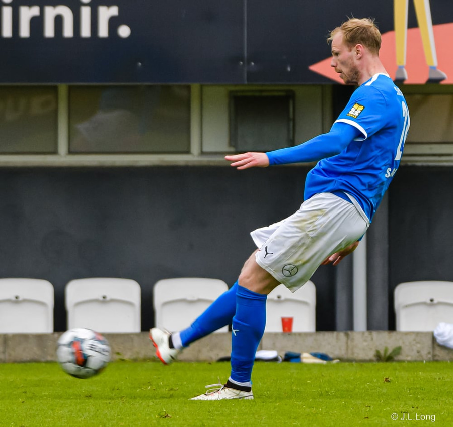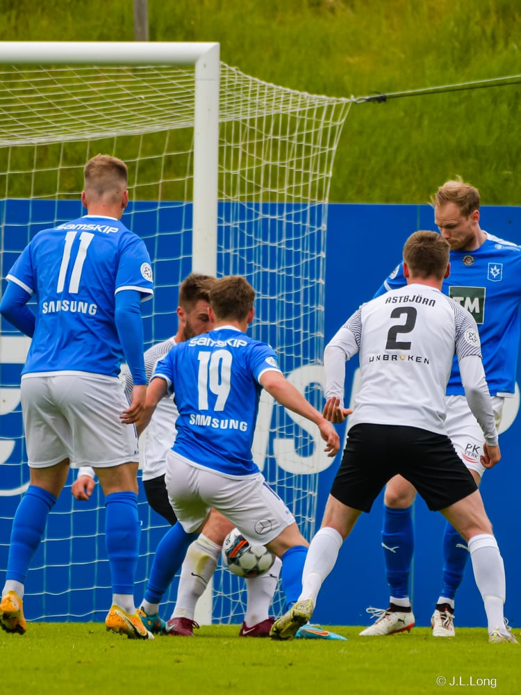 Aftur fær Baldur Logi frábært færi inn á teig þar sem hann er alveg einn en skotið alveg jafn langt framhjá.