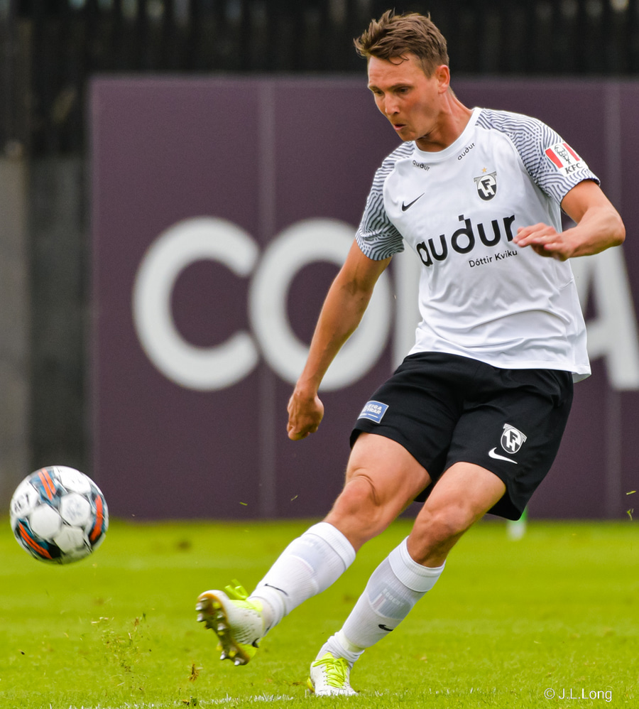 Oliver var hálf sloppinn í gegn upp hægri kantinn en tekur svo full þunga snertingu og setur hann í markspyrnu.