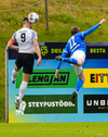 Snertingin frá Baldri tekur knöttinn hinsvegar aðeins of utarlega og skotið hans í hliðarnetið.