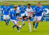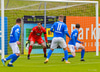 Kiddi tekur hornspyrnuna og boltinn hrekkur af Birni Berg og á Björn Daníel sem setur boltann aftur fyrir og Lennon potar honum í markið.