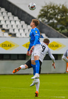 Boltinn berst yfir á Baldur Loga sem er aleinn inn í teignum en hann slæsar boltann alveg rosalega og boltinn er nær því að fara í innkast en í markið.