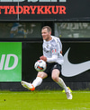 Björn Daníel tekur spyrnuna og hún er alveg afleit. Hátt yfir markið.