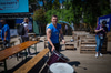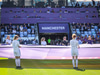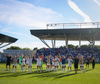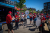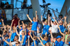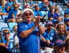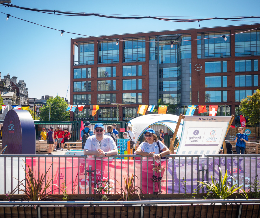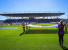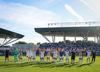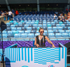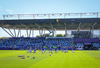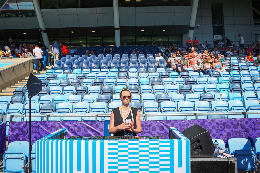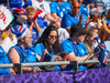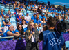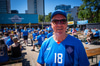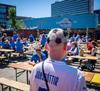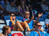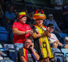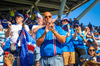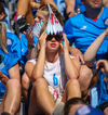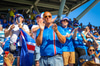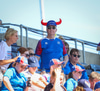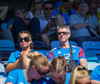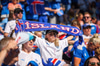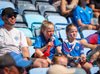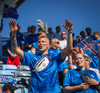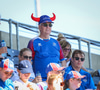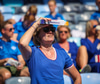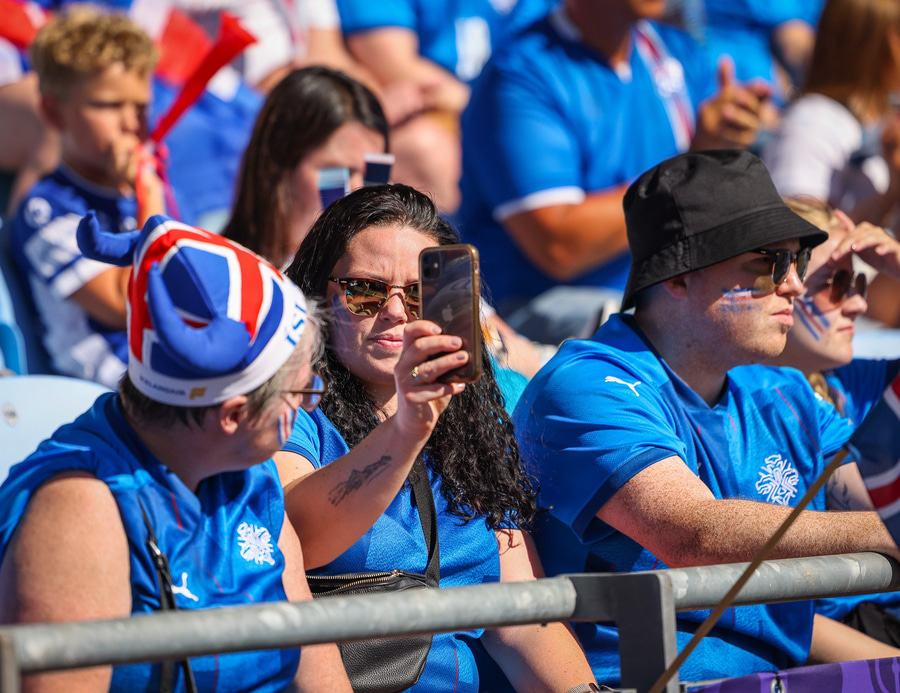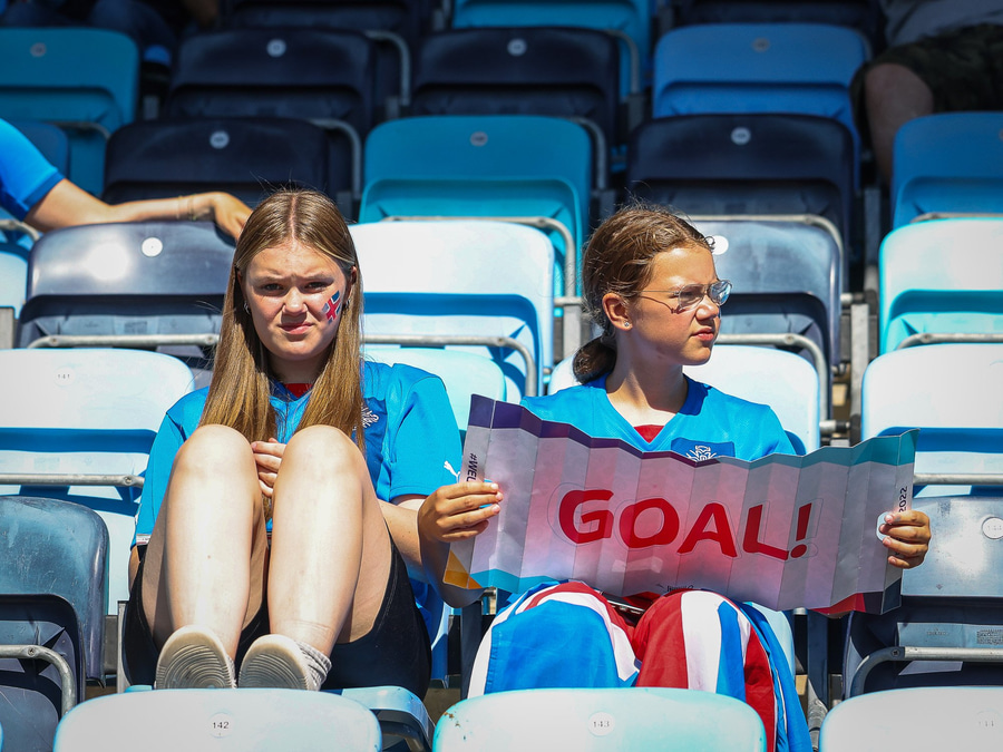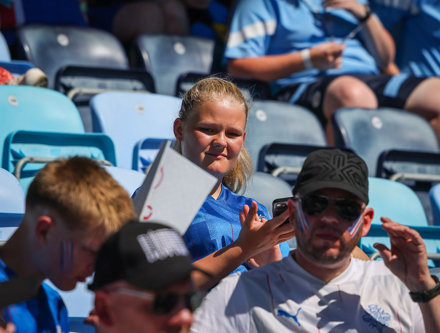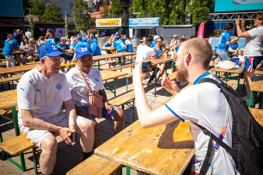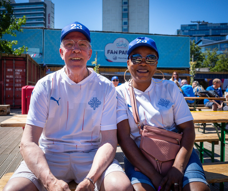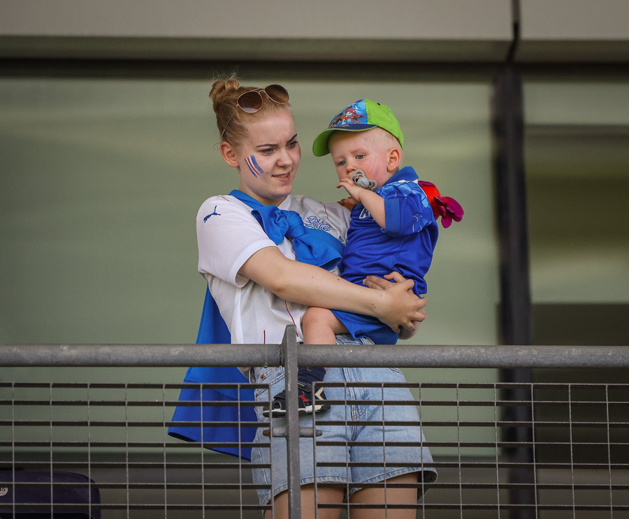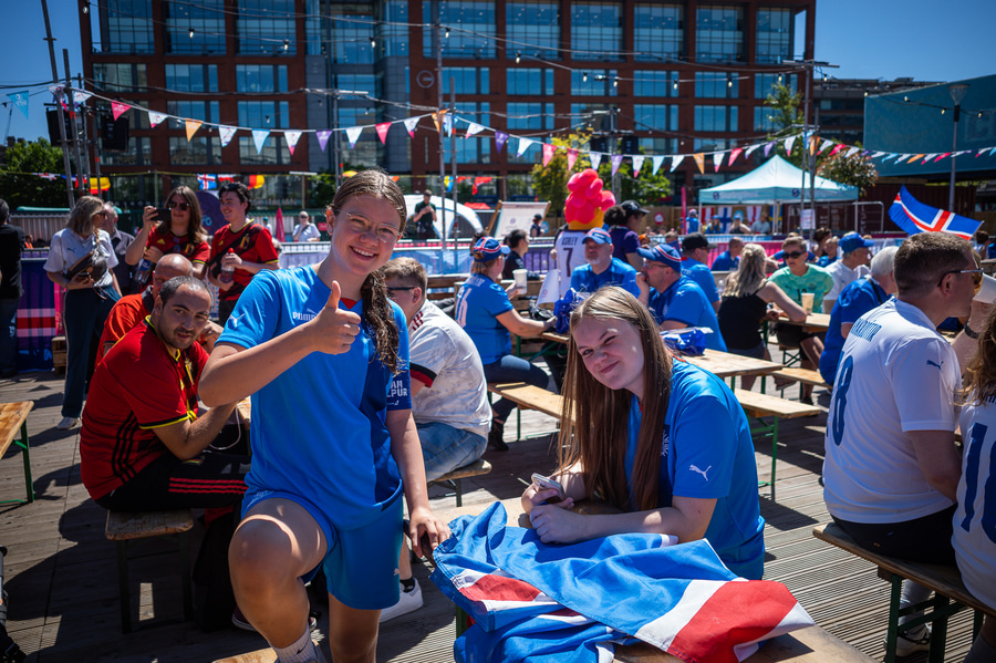 Stuðningsmenn Íslands eru byrjaðir að koma sér fyrir á vellinum og vallarþulurinn minnir fólk á að vera duglegt við að drekka vatn og bera á sig sólarvörn.