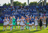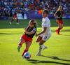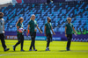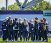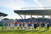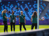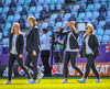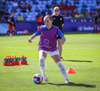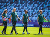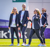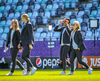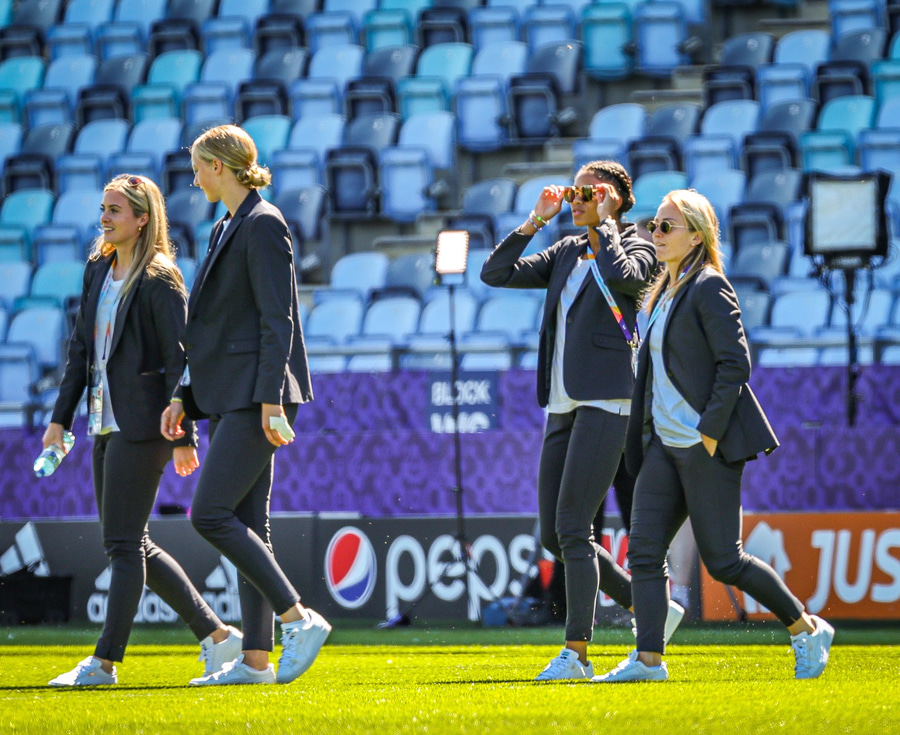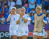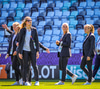 Stelpurnar gengu inn á völlinn rúmlega klukkutíma fyrir leik