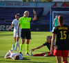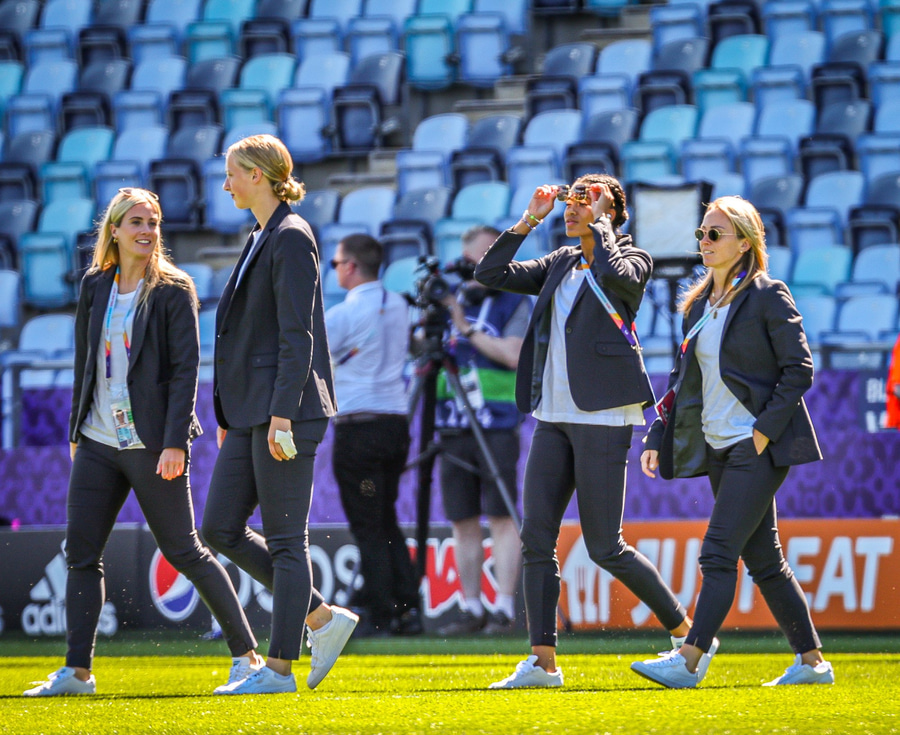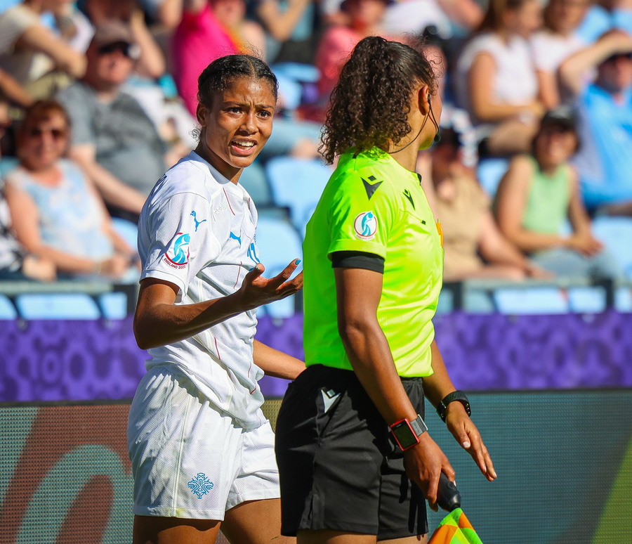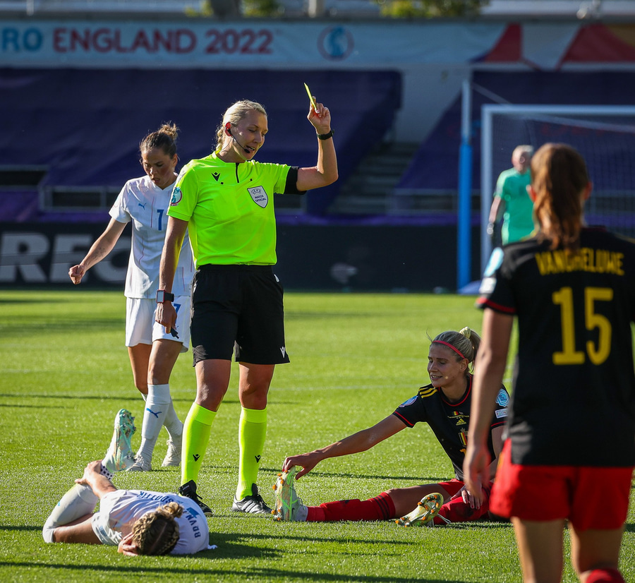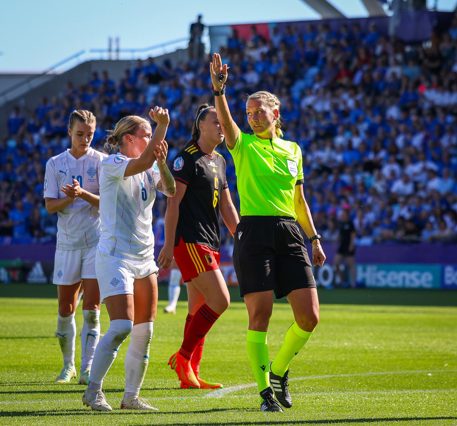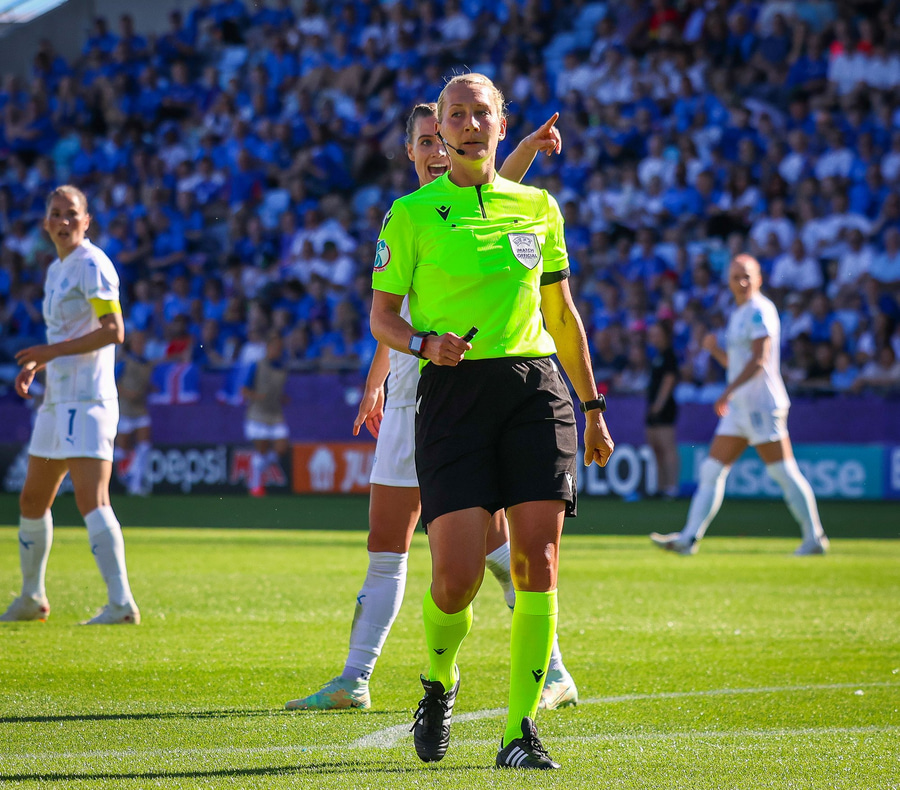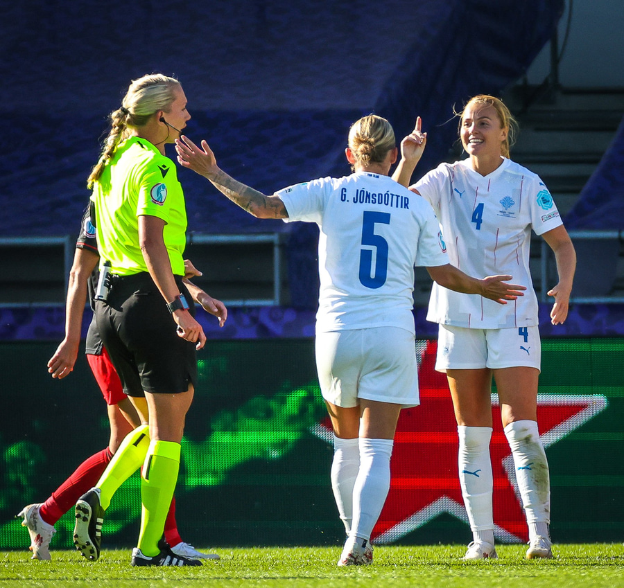 Tess Olofsson frá Svíþjóð er aðaldómari leiksins en aðstoðardómarar eru Almira Spahic frá Bosníu og Franca Overtoom frá Hollandi. Fjórði dómarinn kemur frá Makedóníu og hollenskir dómarar sjá um VAR myndbandsdómgæsluna.