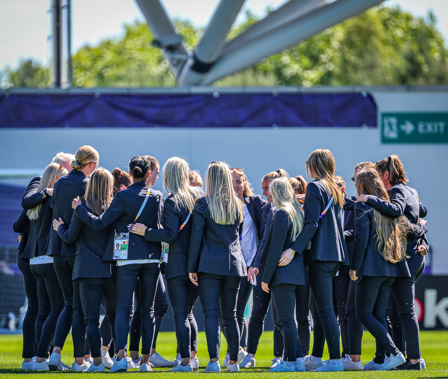 ,,Já, ég finn að spennustigið er lægra, það er ótrúlega rólegt og yfirvegað yfir hópnum. Það er ákveðin reynsla hjá þeim sem hafa farið áður á stórmót og líka komin miklu meiri reynsla hjá ungu leikmönnunum með því að spila í stórum deildum í dag og spila stóra leiki. Mér finnst ótrúlega gott jafnvægi í hópnum. Við erum rólegar, yfirvegaðar og okkur líður ótrúlega vel. Spennustigið er mjög gott."