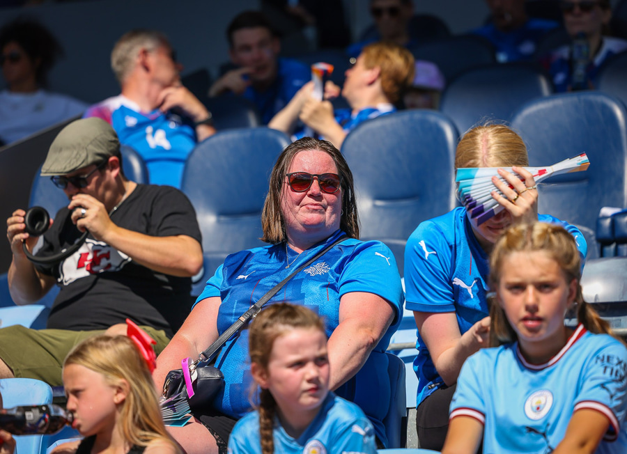 Eins og ég sagði áðan er tæplega þrjátíu gráðu hiti í Manchester og glampandi sól.