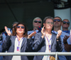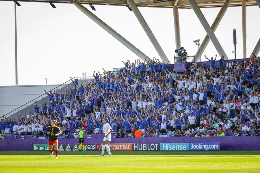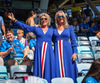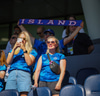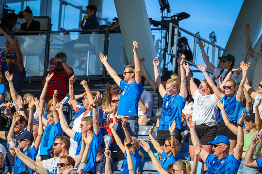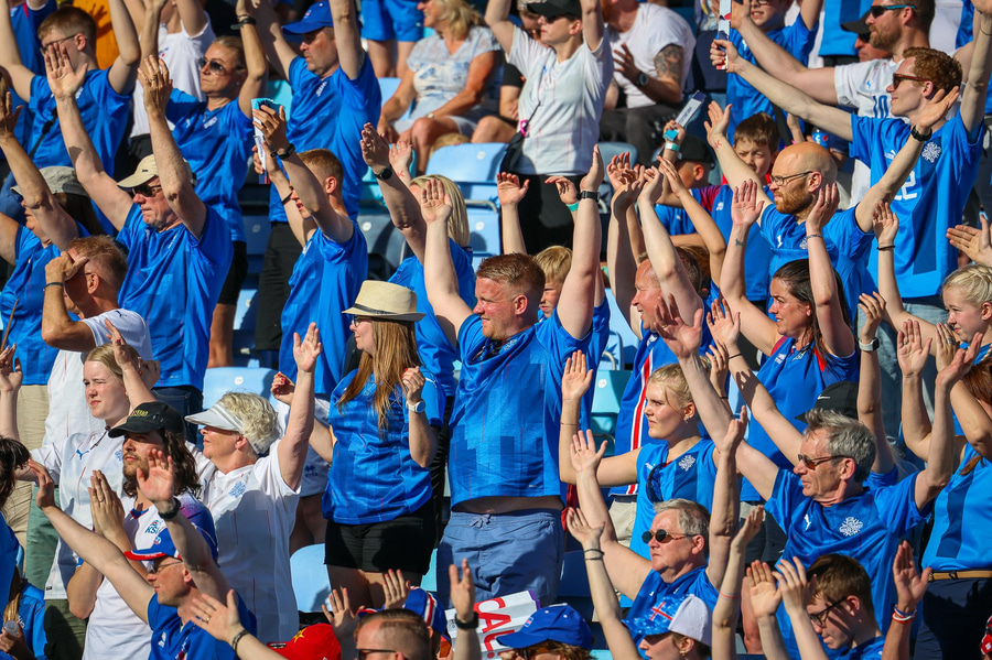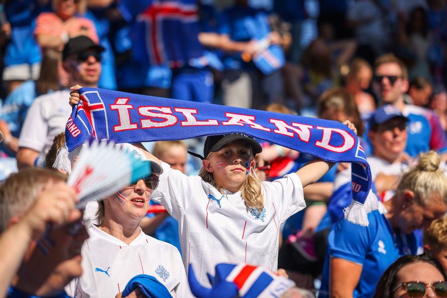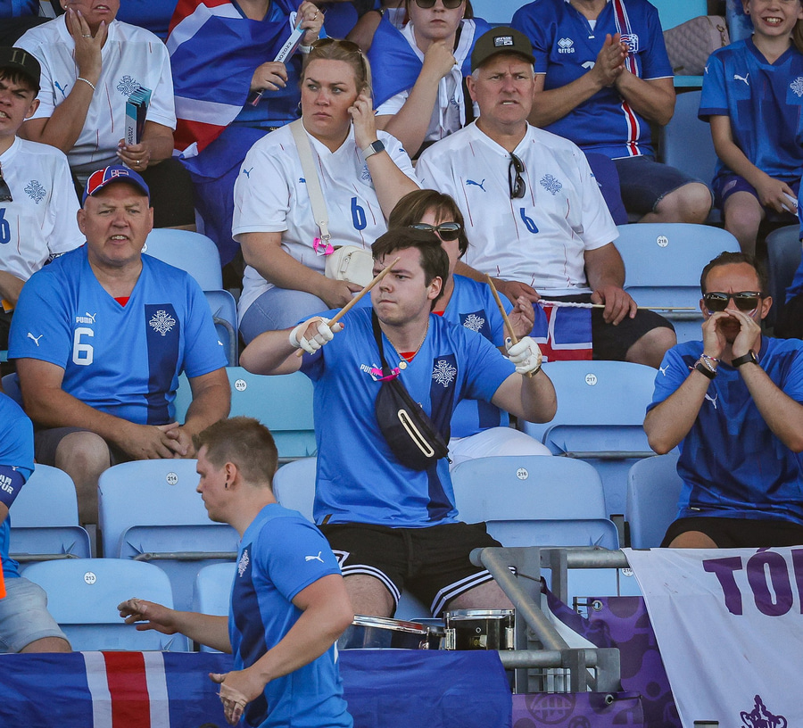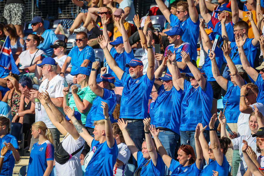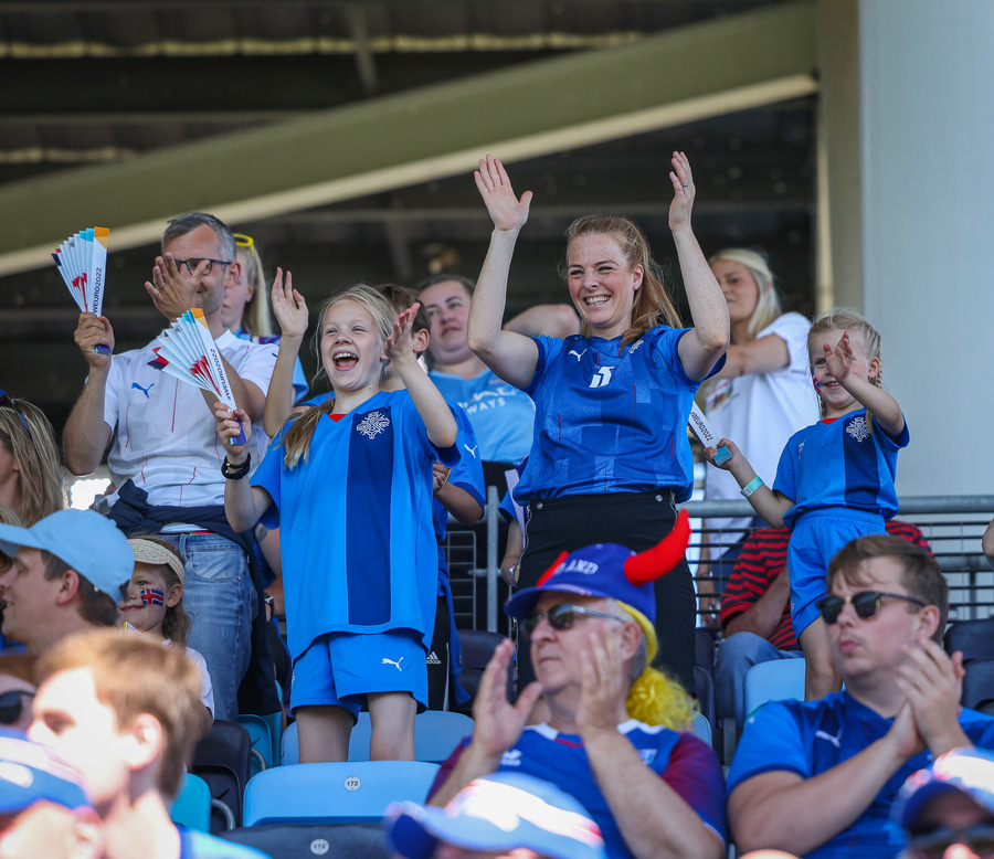 Tólfan heldur vel um taumana og stemningin er sérdeilis prýðileg hjá stuðningsfólki Íslands.