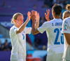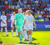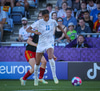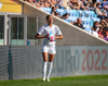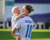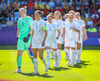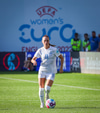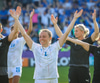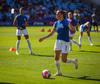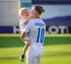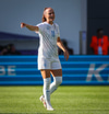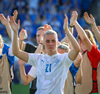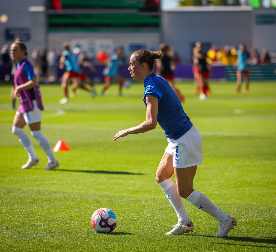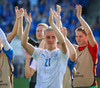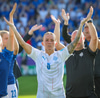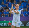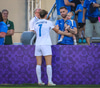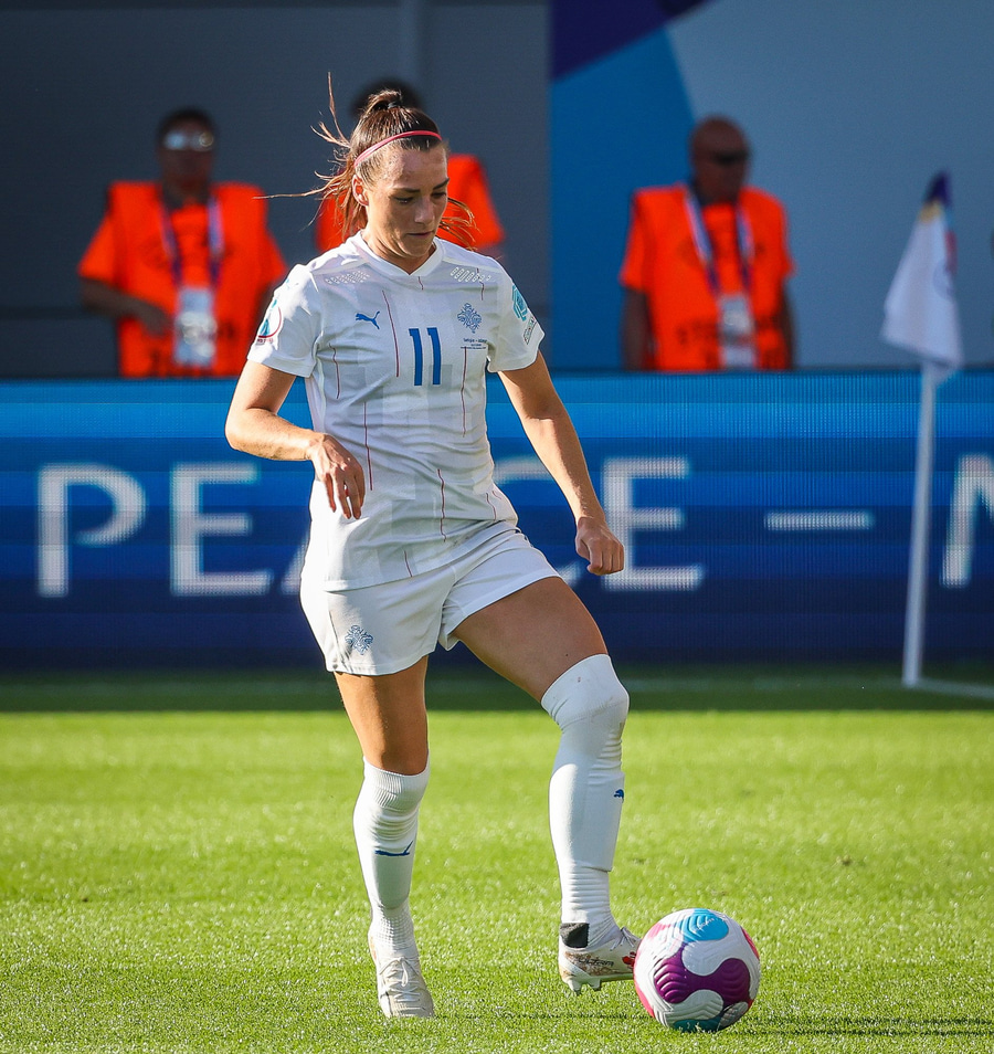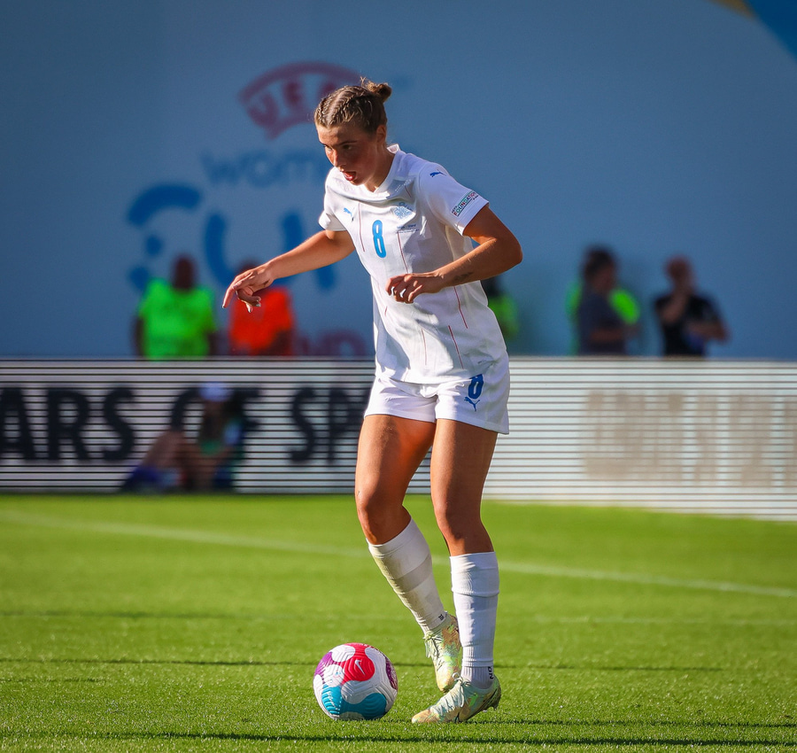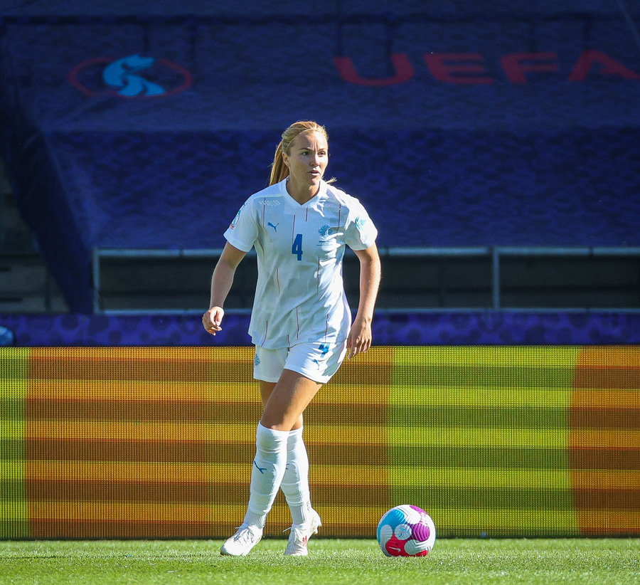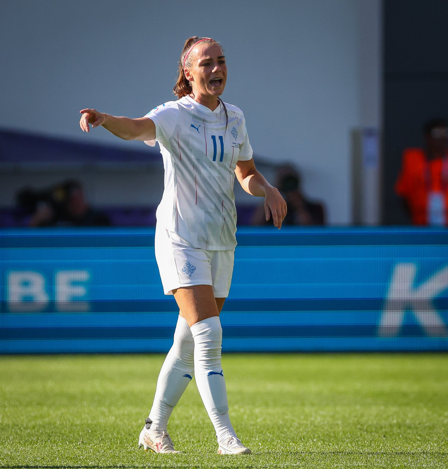 Berglind Björg tekur upphafsspyrnuna, Ísland byrjar með boltann!