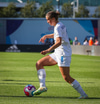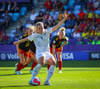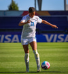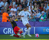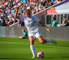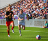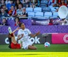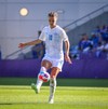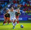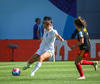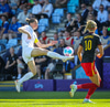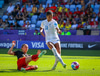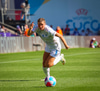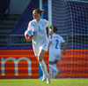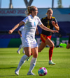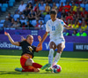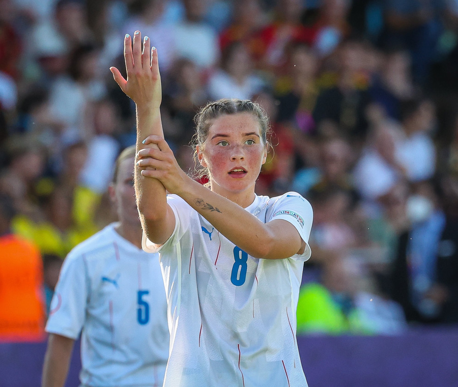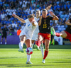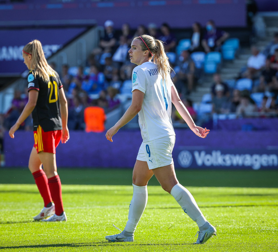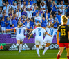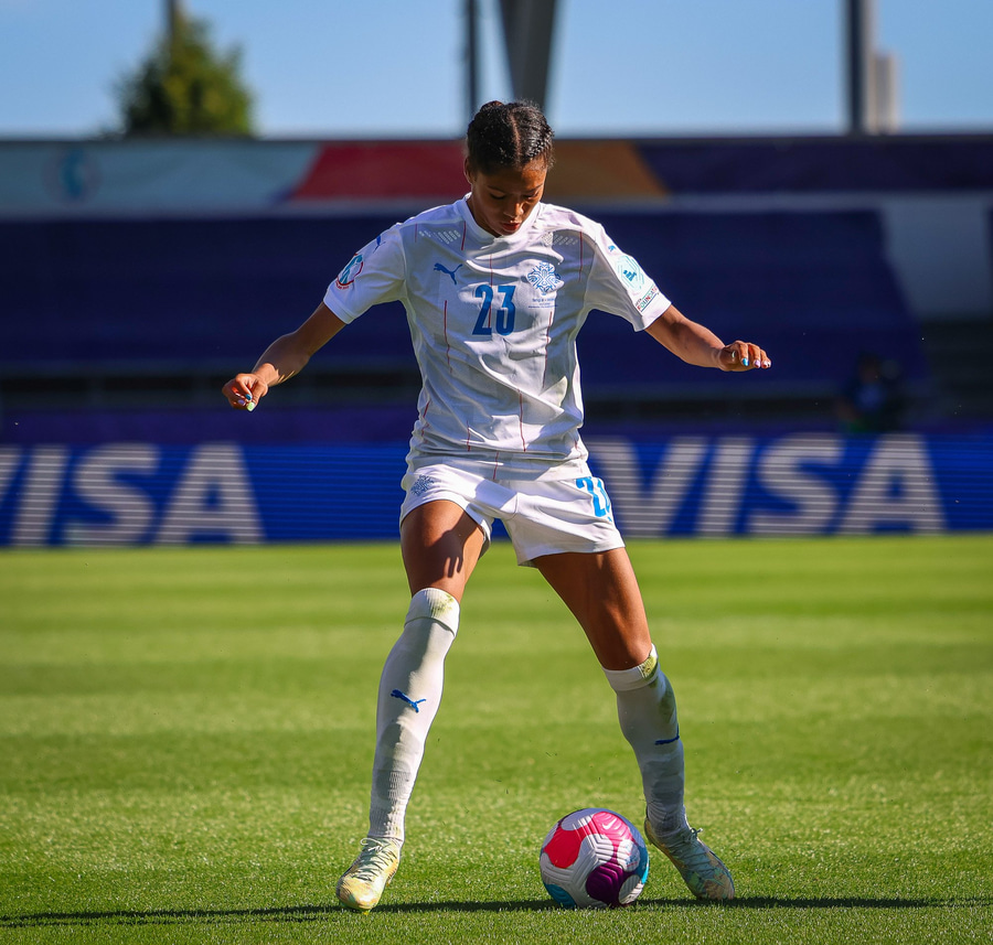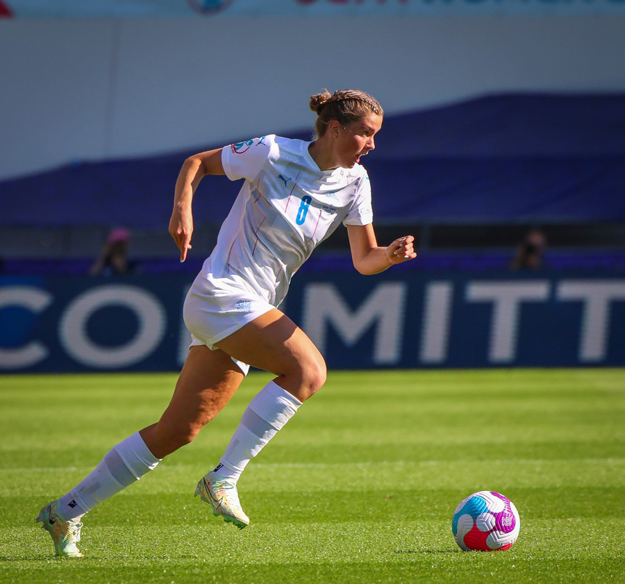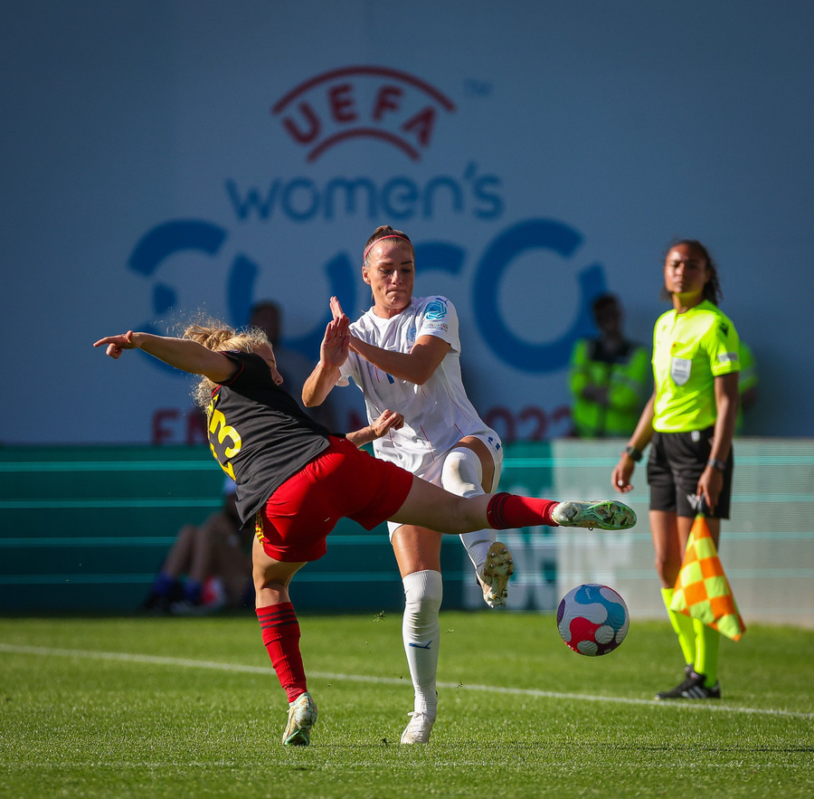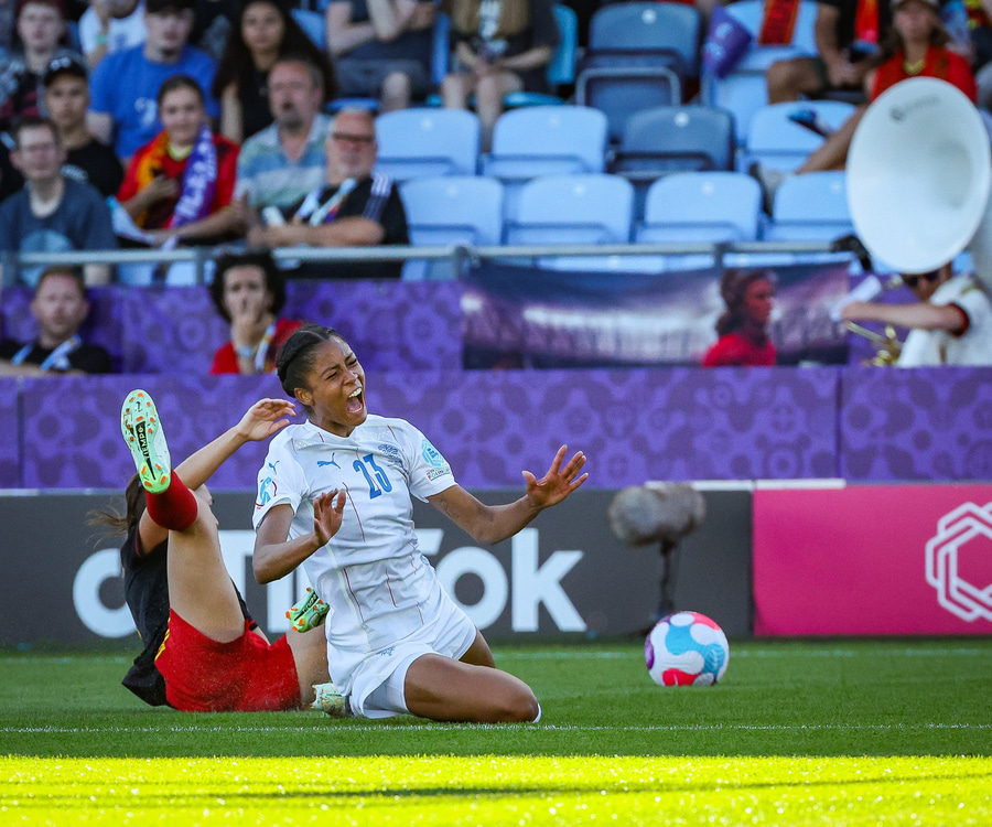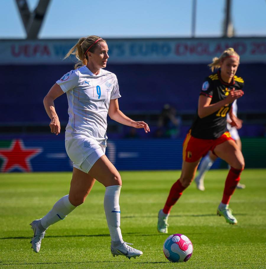 Skeiðar upp allan vallarhelming Belgíu og rúmlega það, stendur af sér eina tæklingu og kemst framhjá tveimur varnarmönnum. Hún á svo skot með vinstri fæti sem Evrard ver með sínum vinstri fæti og Ísland á horn.