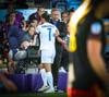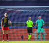 Fyrst er þó skoðun í gangi í VAR! Sveindís átti skot sem mögulega fór í hönd leikmanns Belgíu og þaðan aftur fyrir!