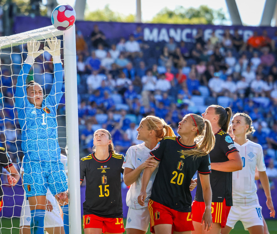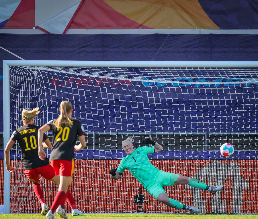 Vel varið hjá Söndru! Wullaert með gott skot sem er á leiðinni í fjærhornið en Sandra ver boltann til hliðar og Belgar eiga horn.
